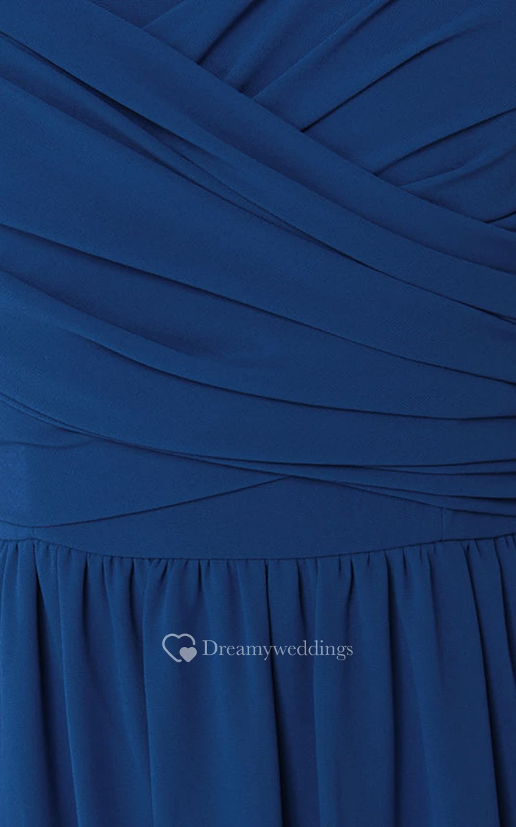Chiffon Chic Dress With Crisscross Ruched Bodice