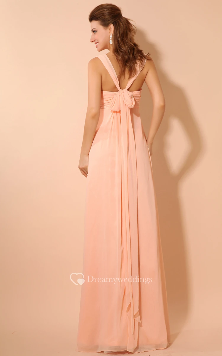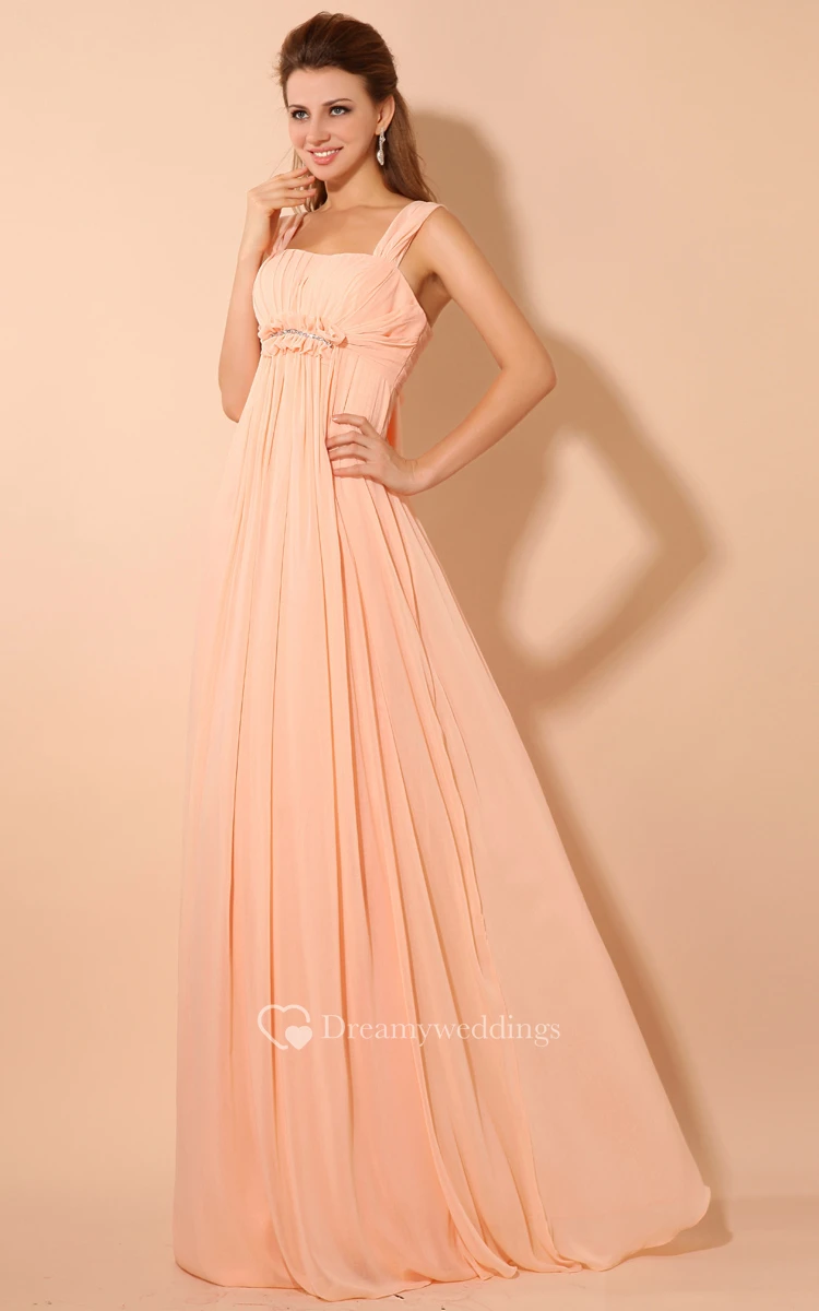 Chiffon Empire Floor-Length Dress With Pleating and Straps
