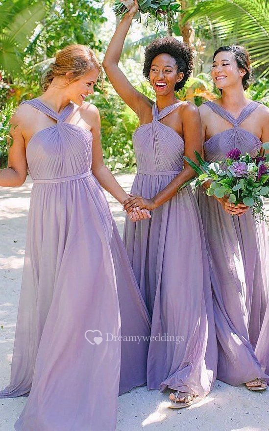 Chiffon Floor-length A Line Sleeveless Adorable Bridesmaid Dress with Pleats and Ruching