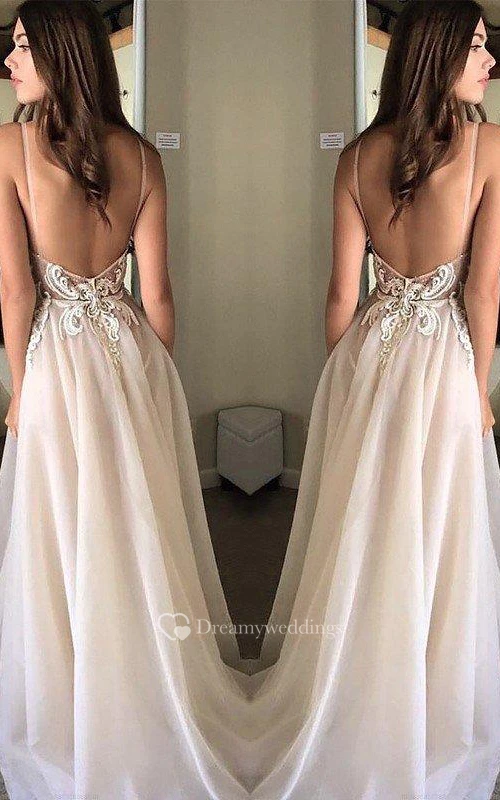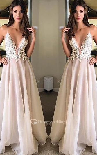 Chiffon Floor-length A Line Sleeveless Casual Evening Dress with Appliques