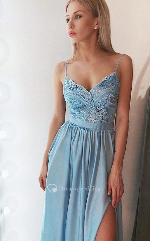 Chiffon Floor-length A Line Sleeveless Elegant Prom Dress with Split Front