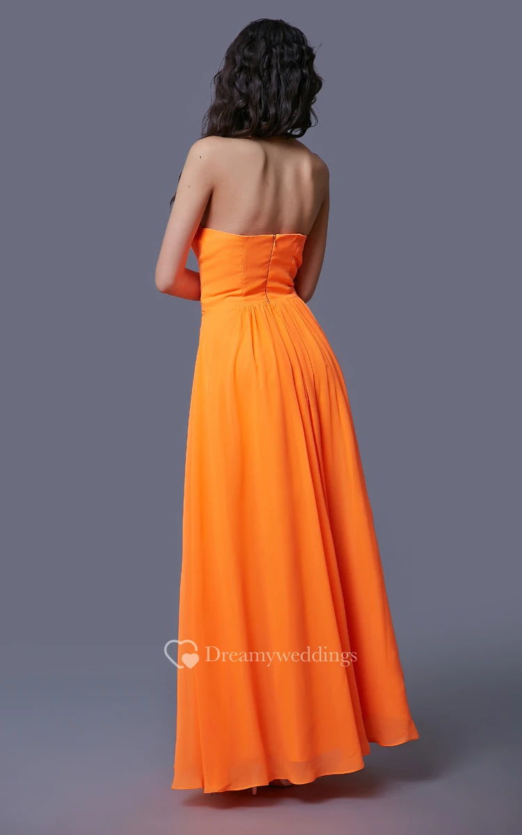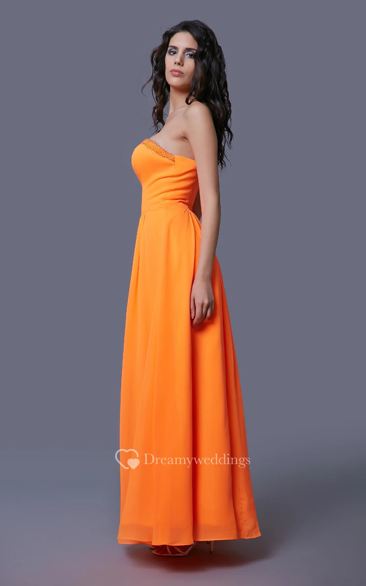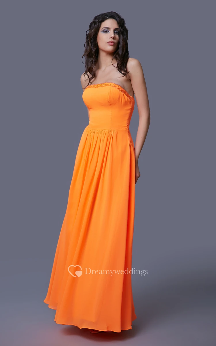 Chiffon Floor Length Strapless Dress With Beaded Top