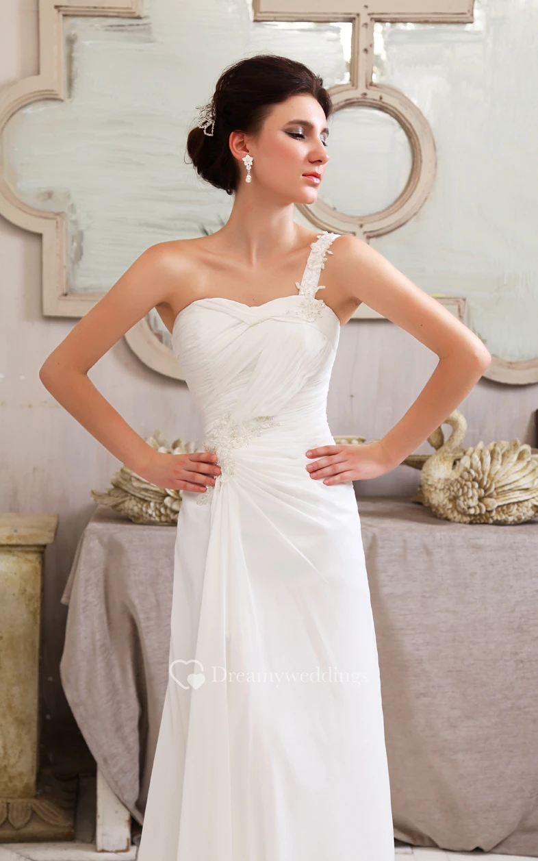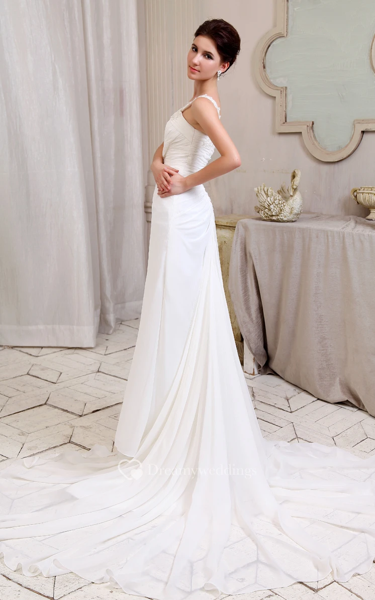 Chiffon Front-Split Sweetheart Dress With Single Strap