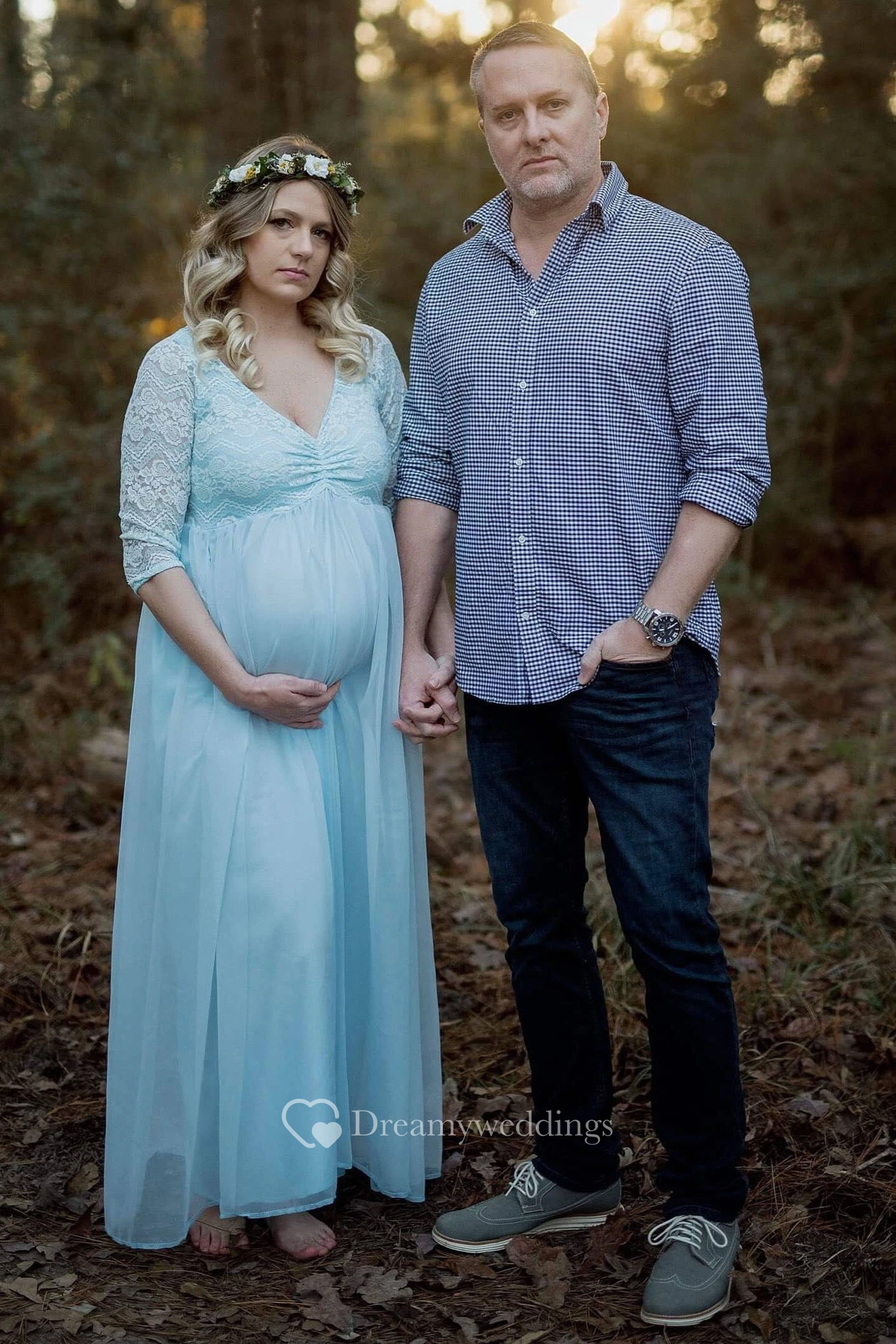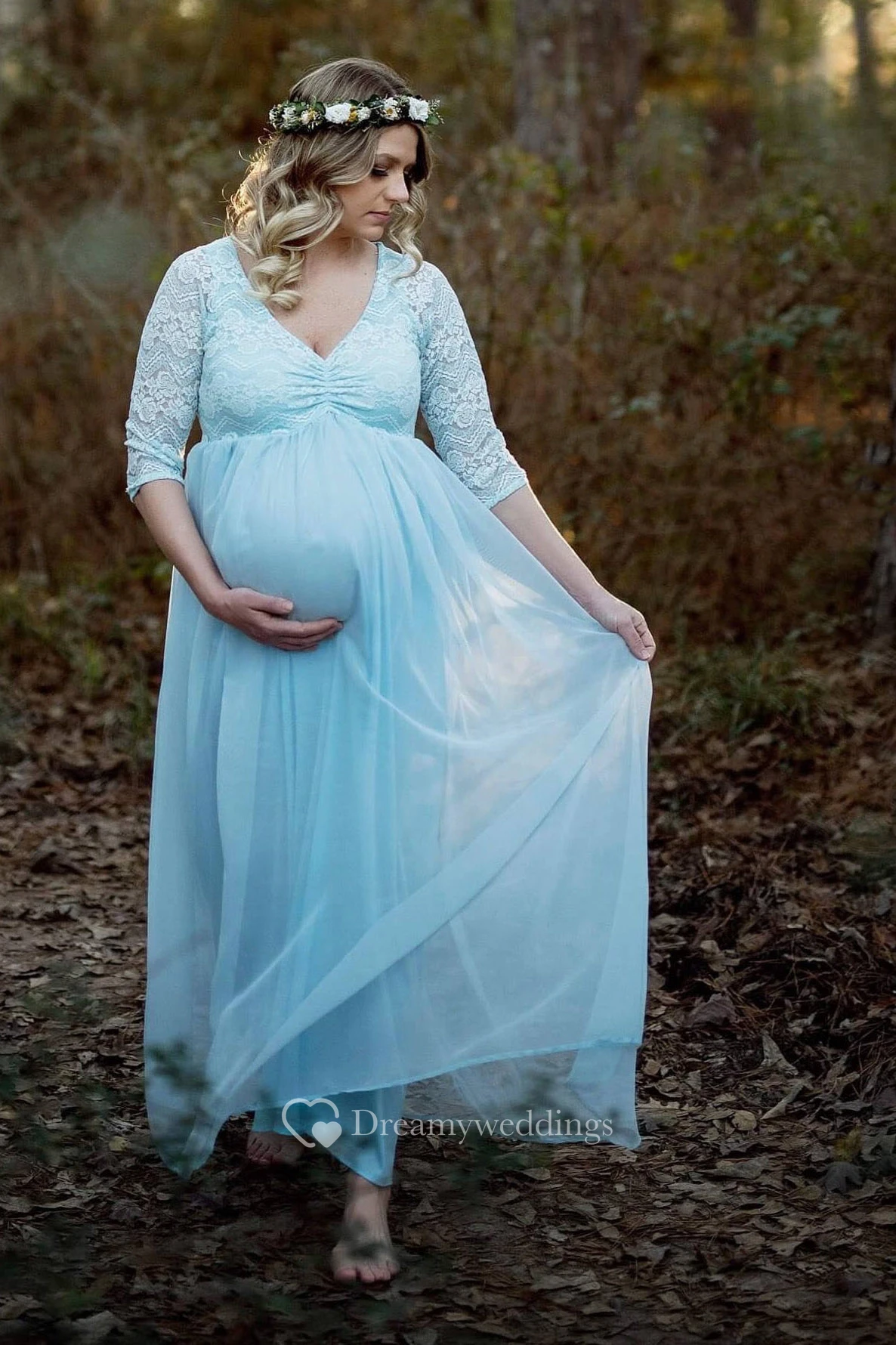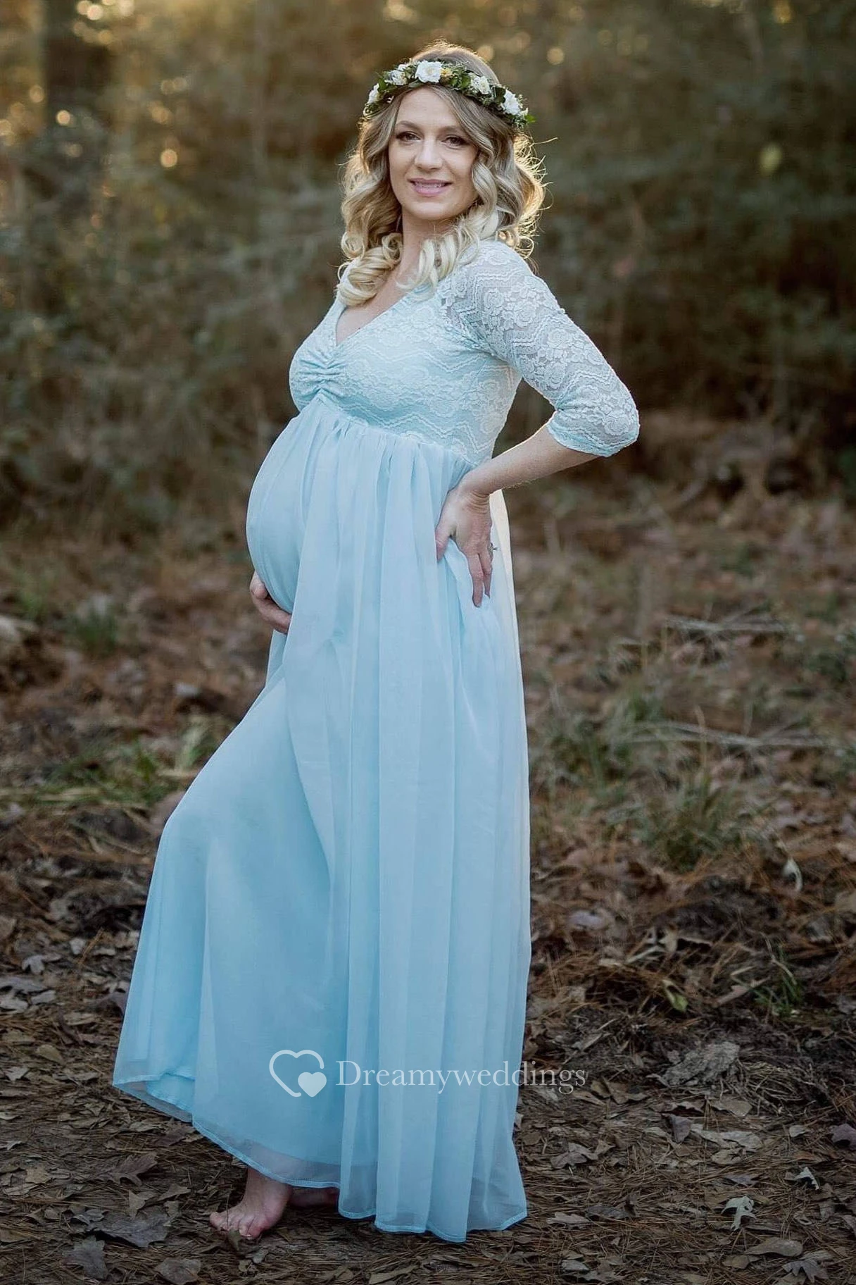 Chiffon Lace A-line Illusion Half Sleeve V-neck Maternity Wedding Dress