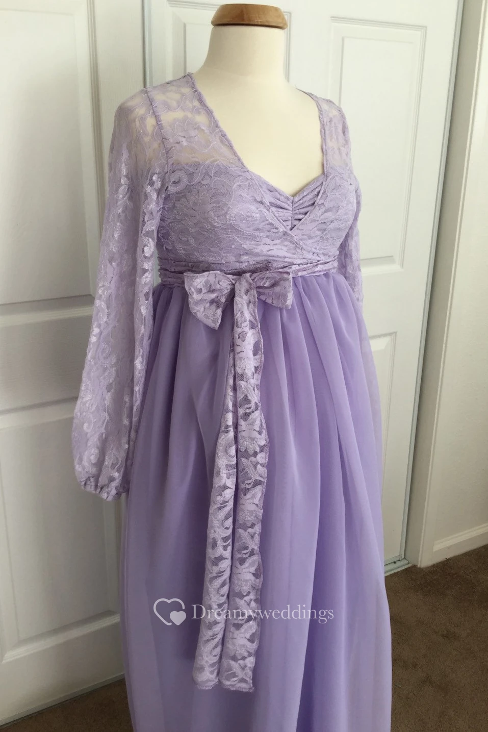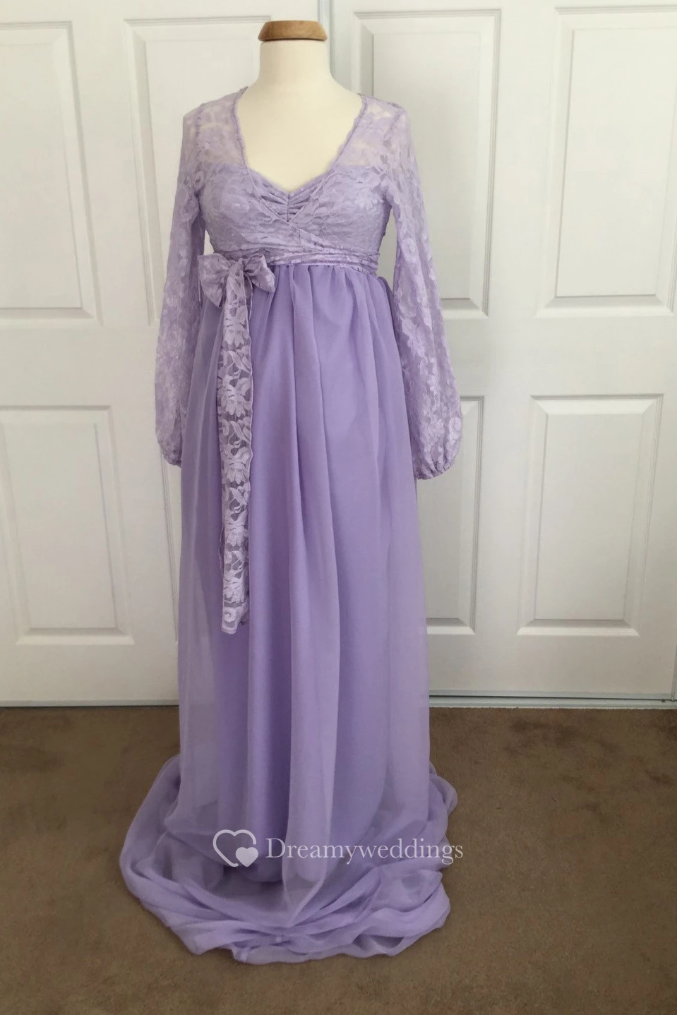 Chiffon Lace A-line Illusion Long Sleeve V-neck Maternity Dress