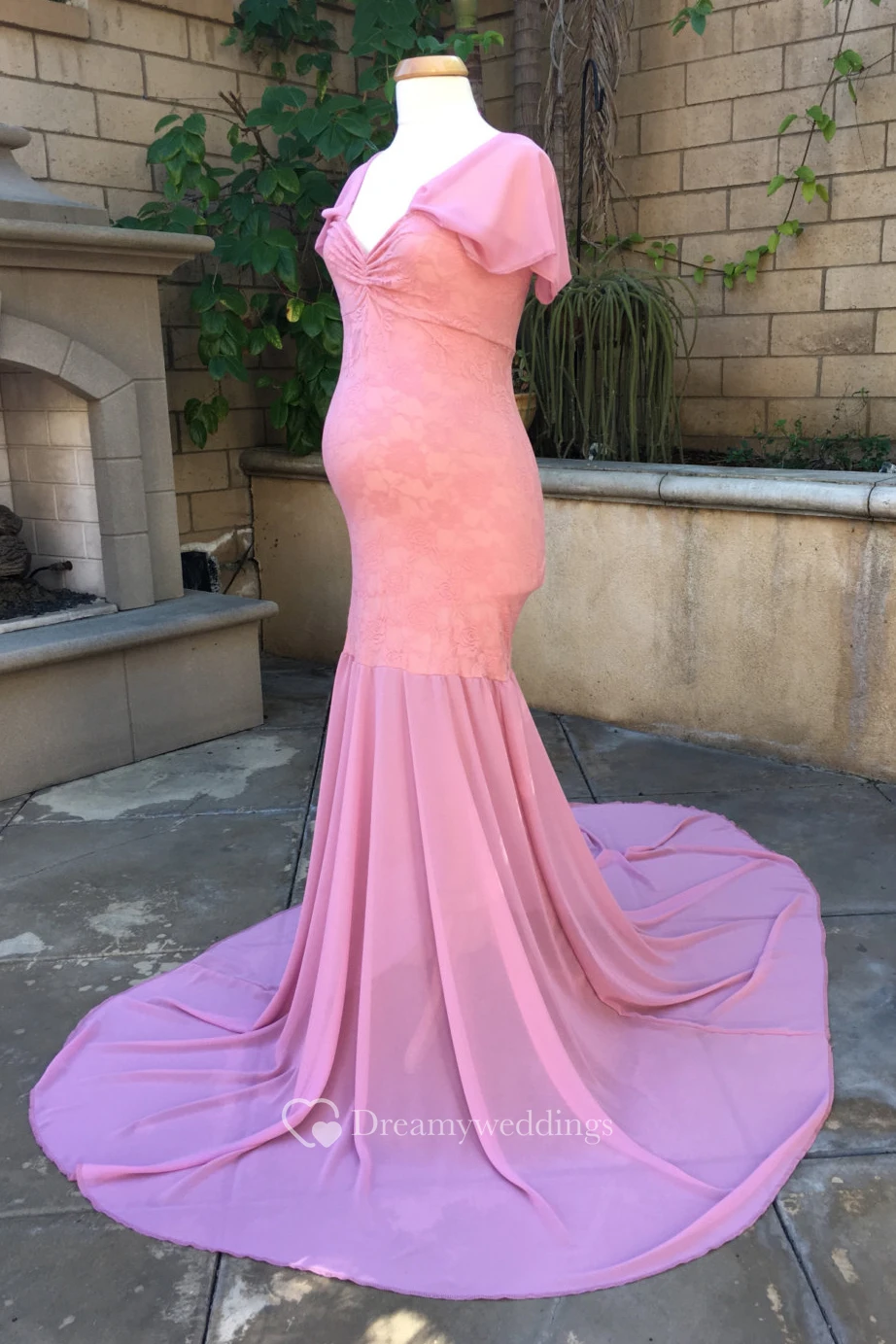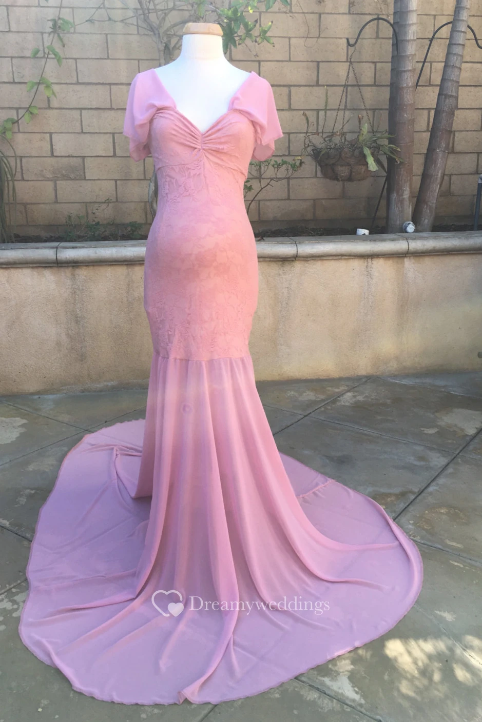 Chiffon Lace Mermaid Bell Short Sleeve V-neck Maternity Dress