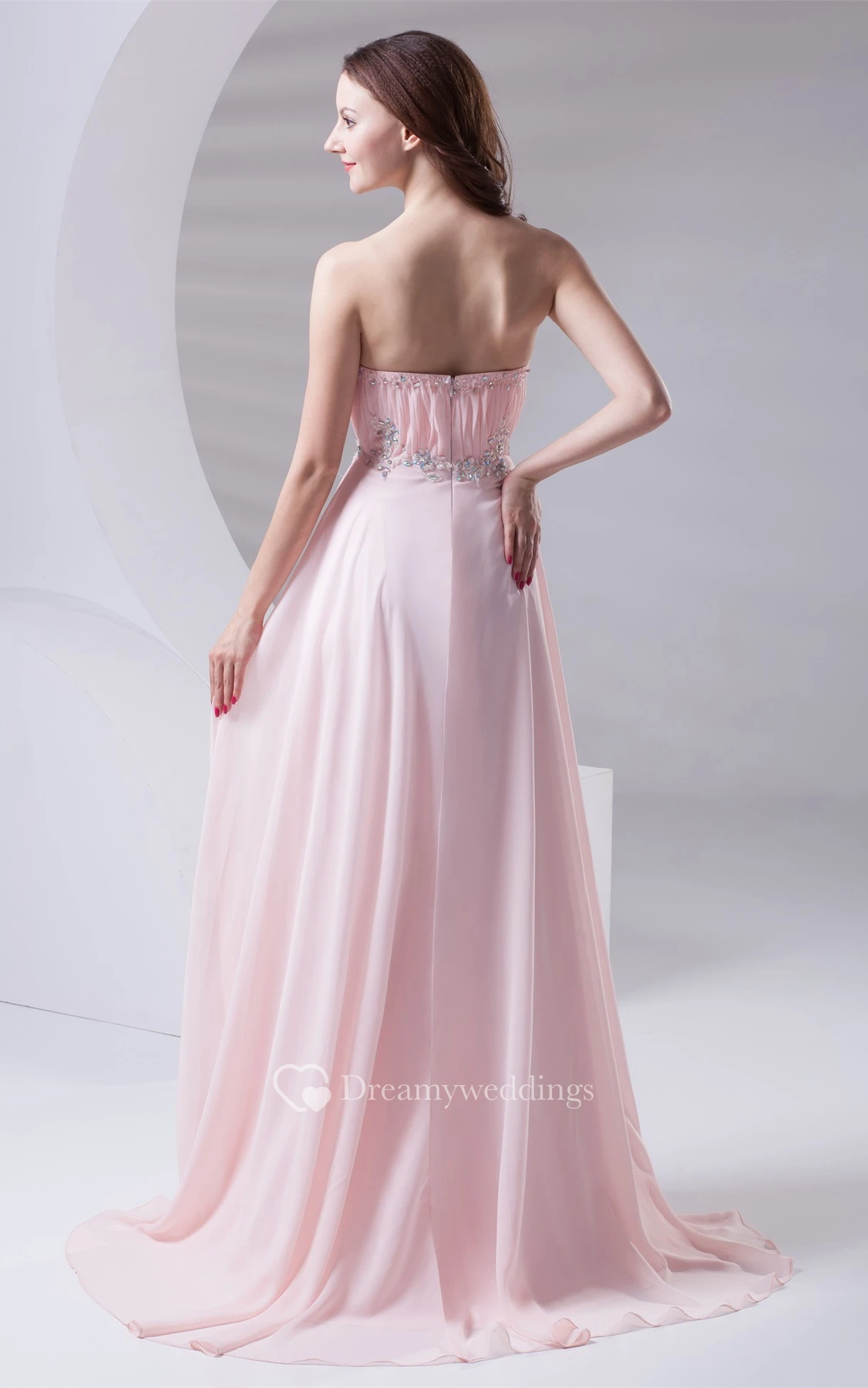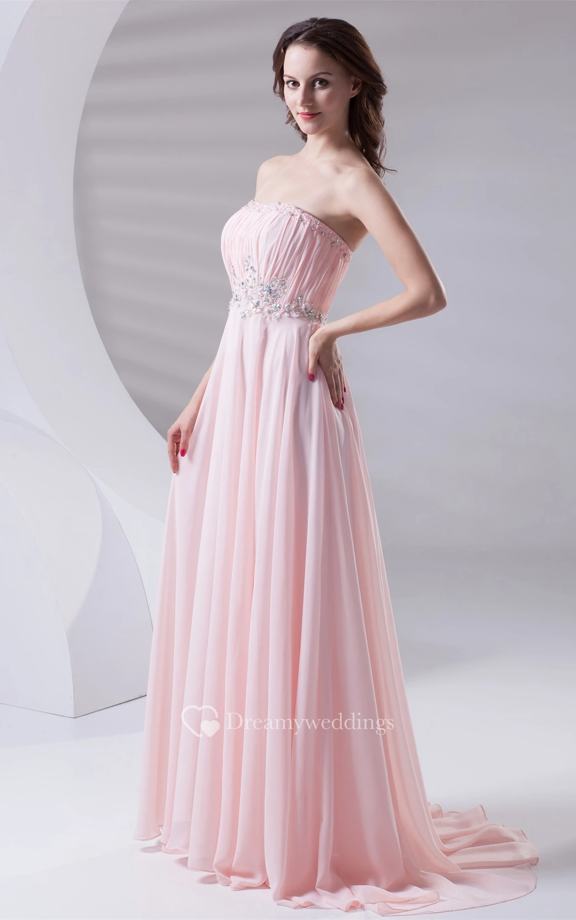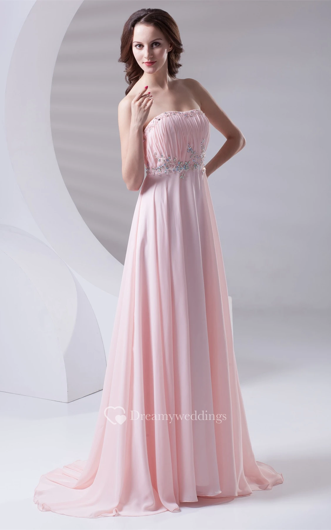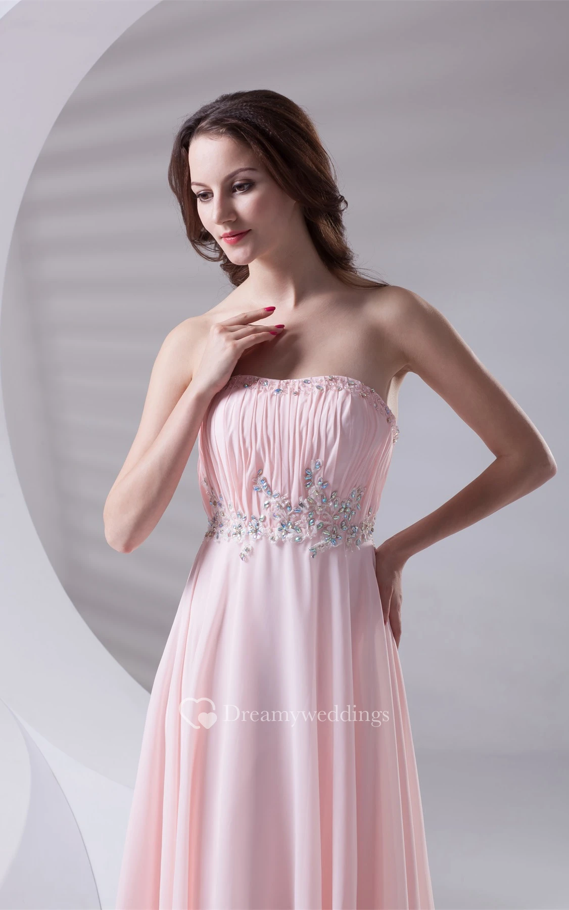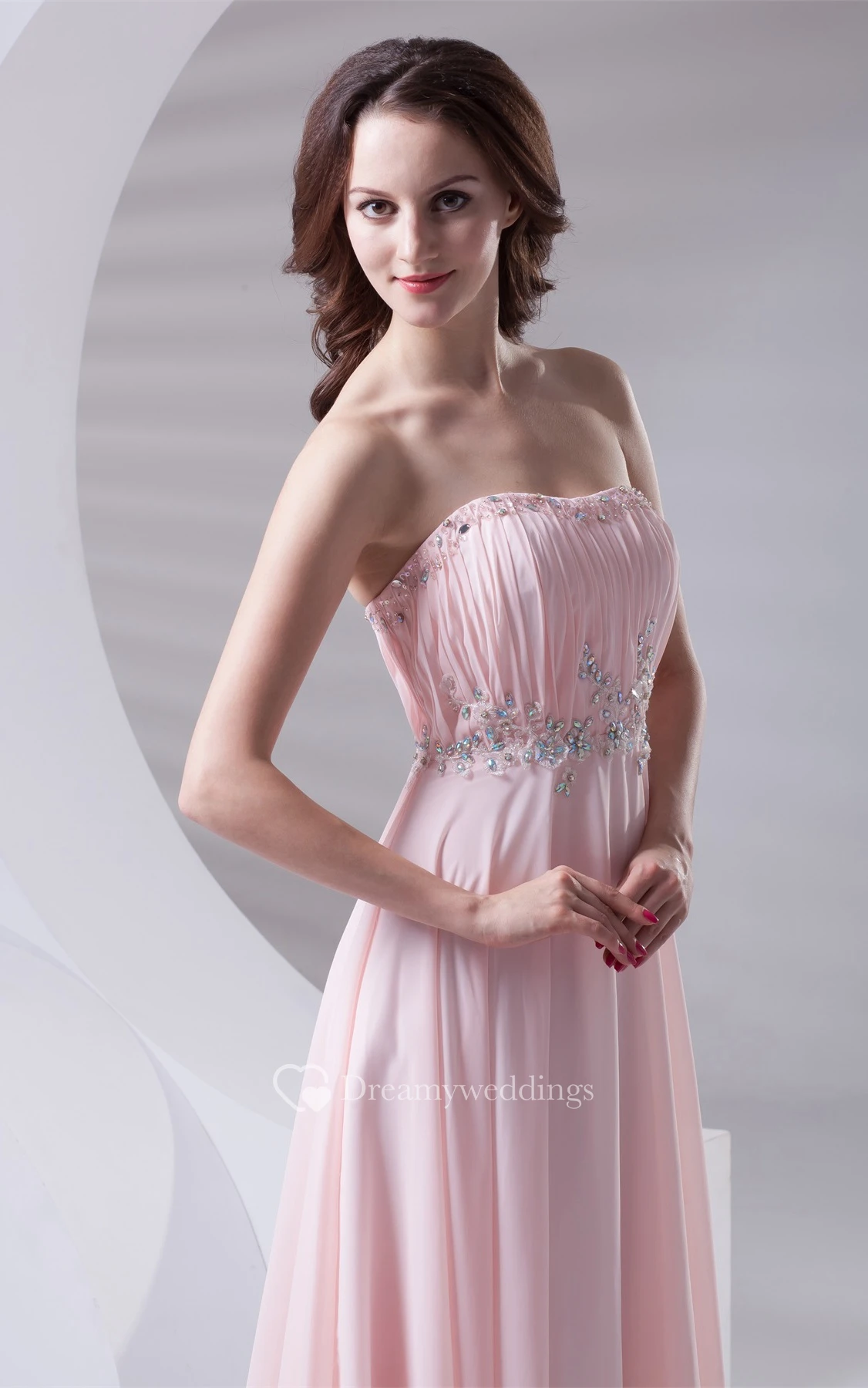 Chiffon Maxi Ruched Jeweled Waist and Gown With Pleats