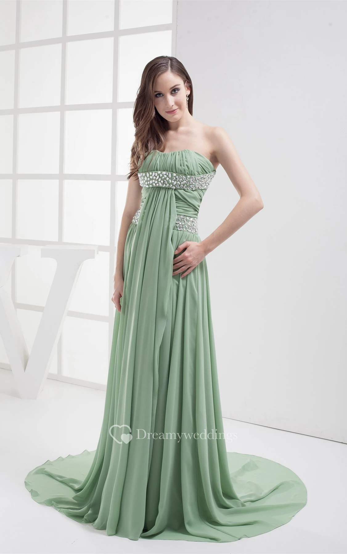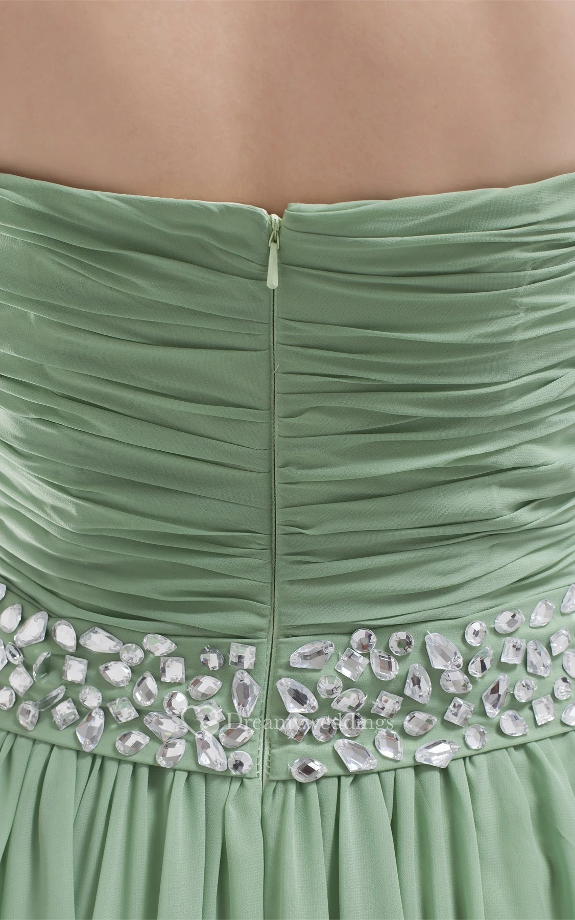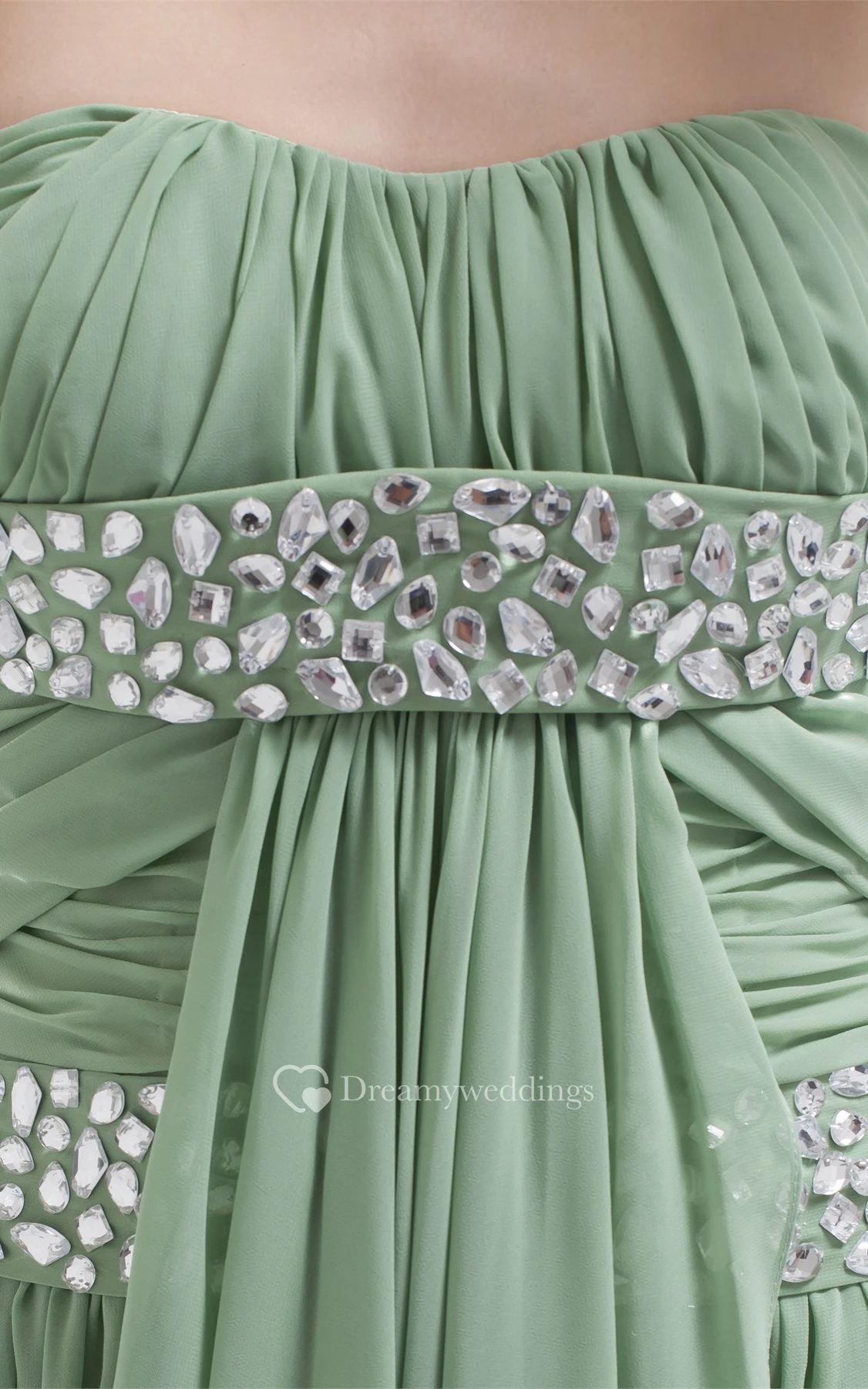 Chiffon Pleated Floor-Length Sleeveless Rhinestone and Dress With Ruching