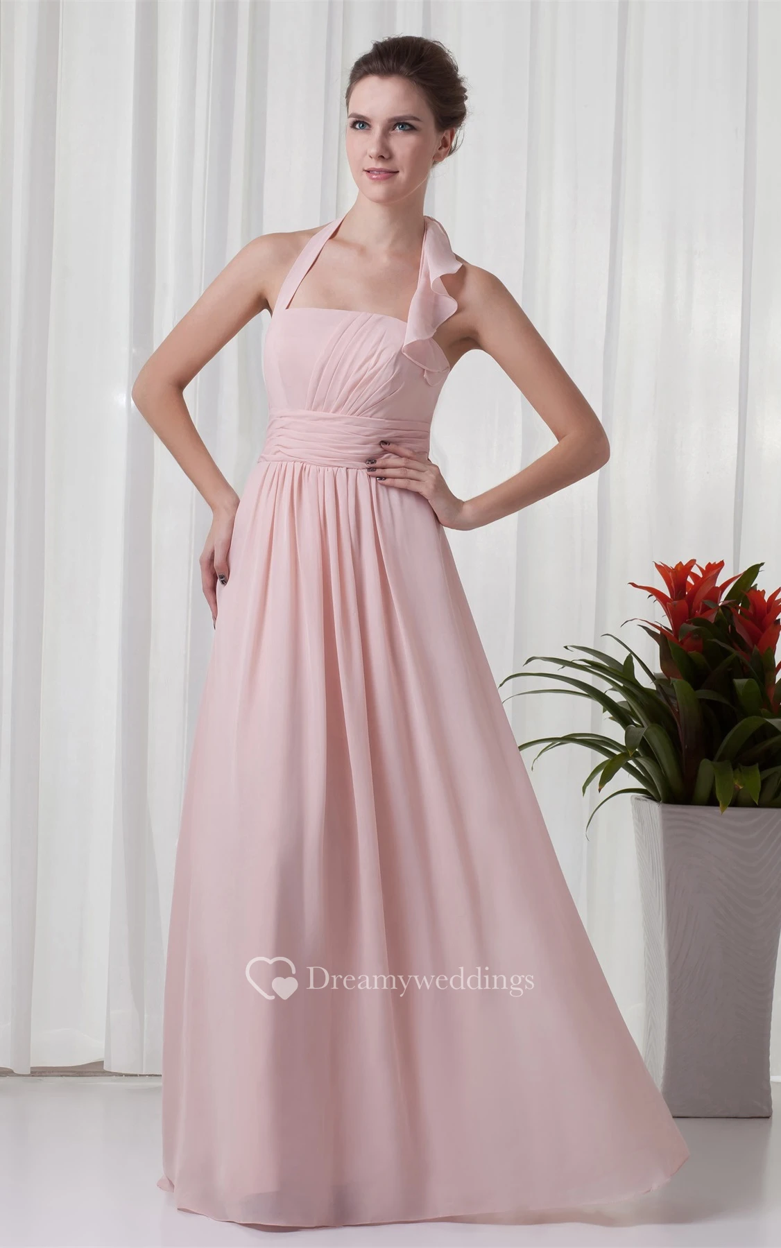 Chiffon Pleated Maxi Dress With Halter