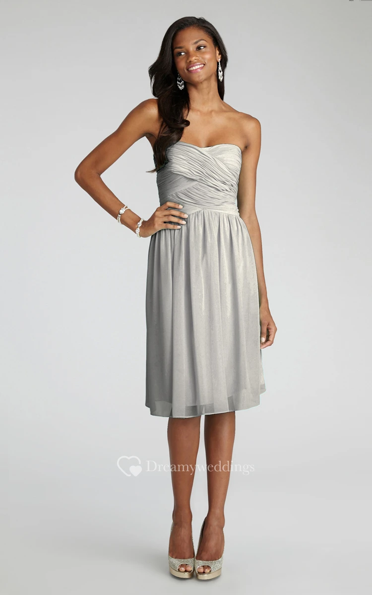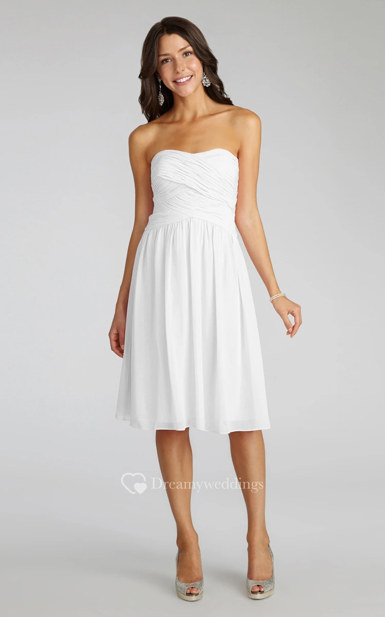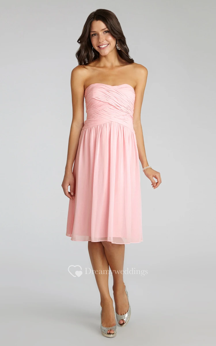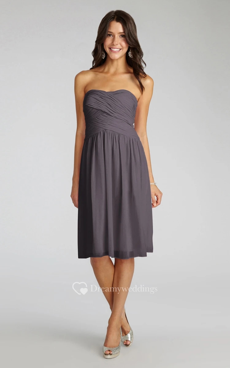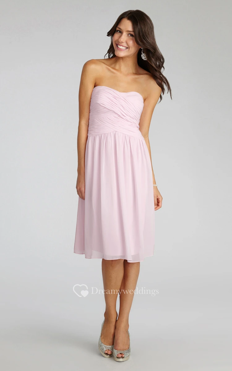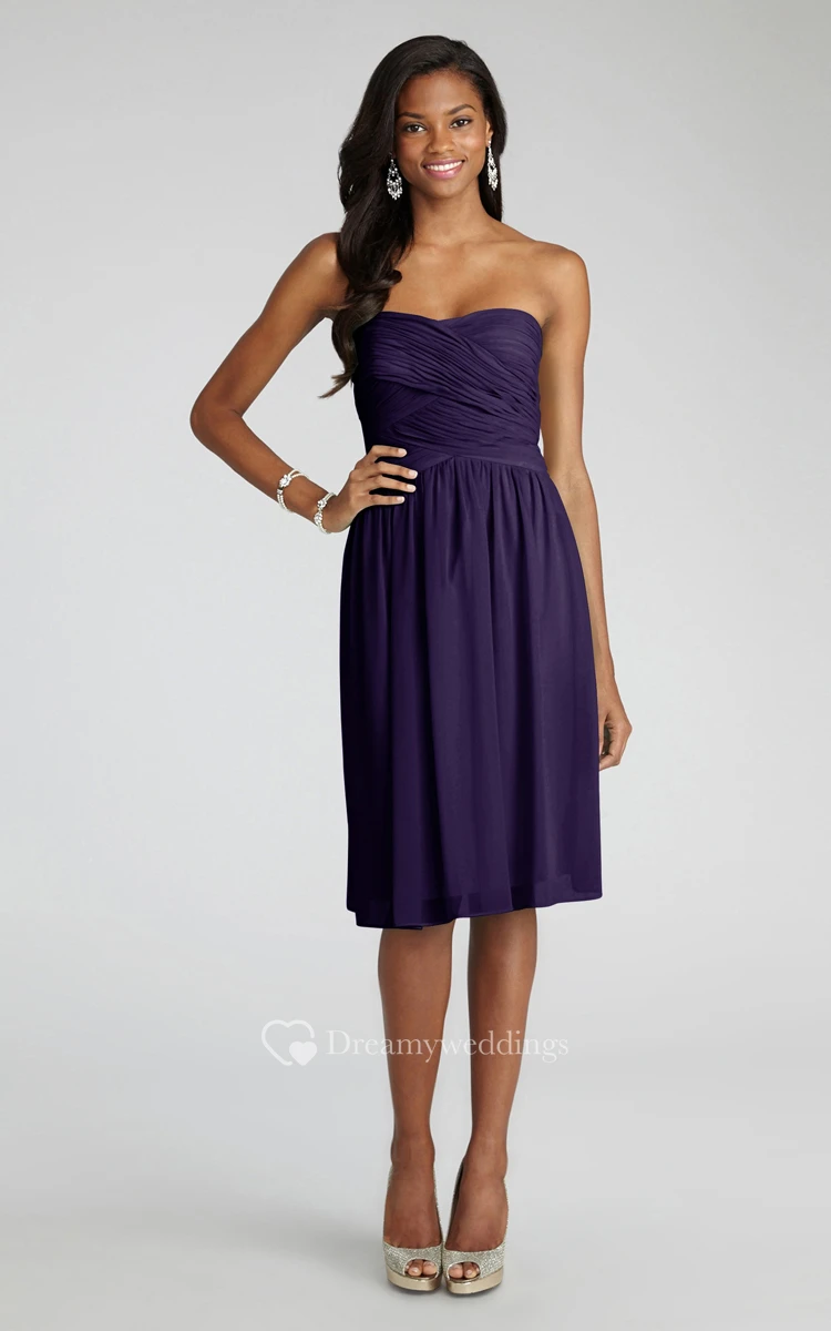 Chiffon Short Strapless Dress With Crisscross Ruching