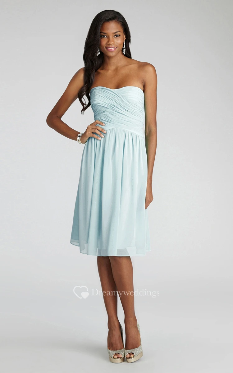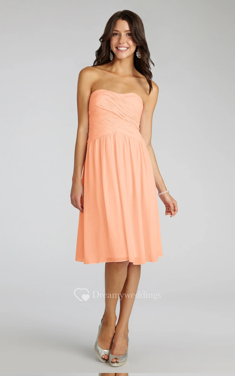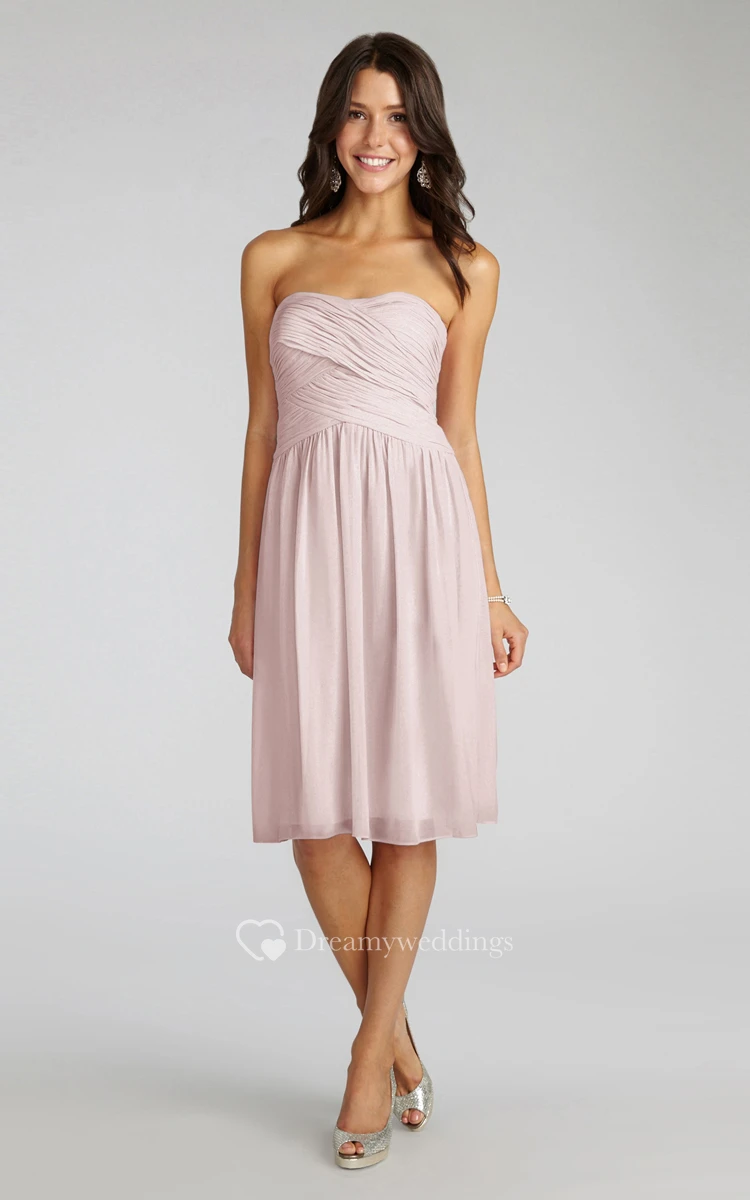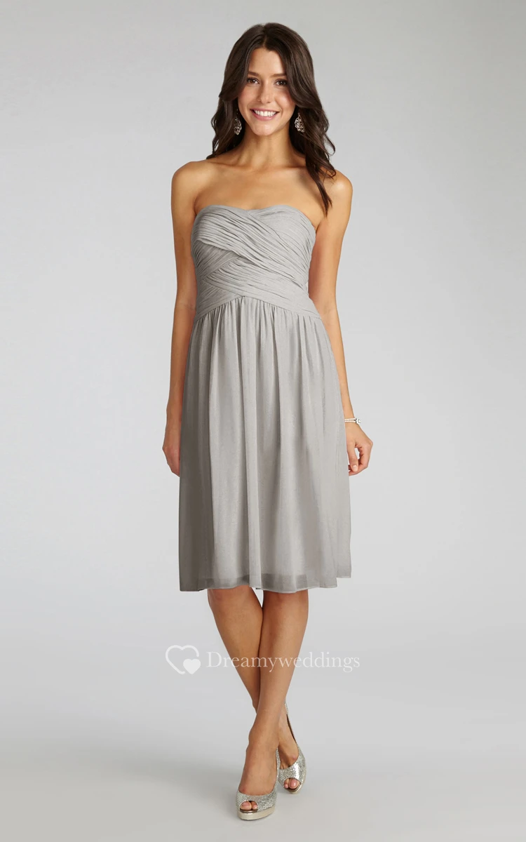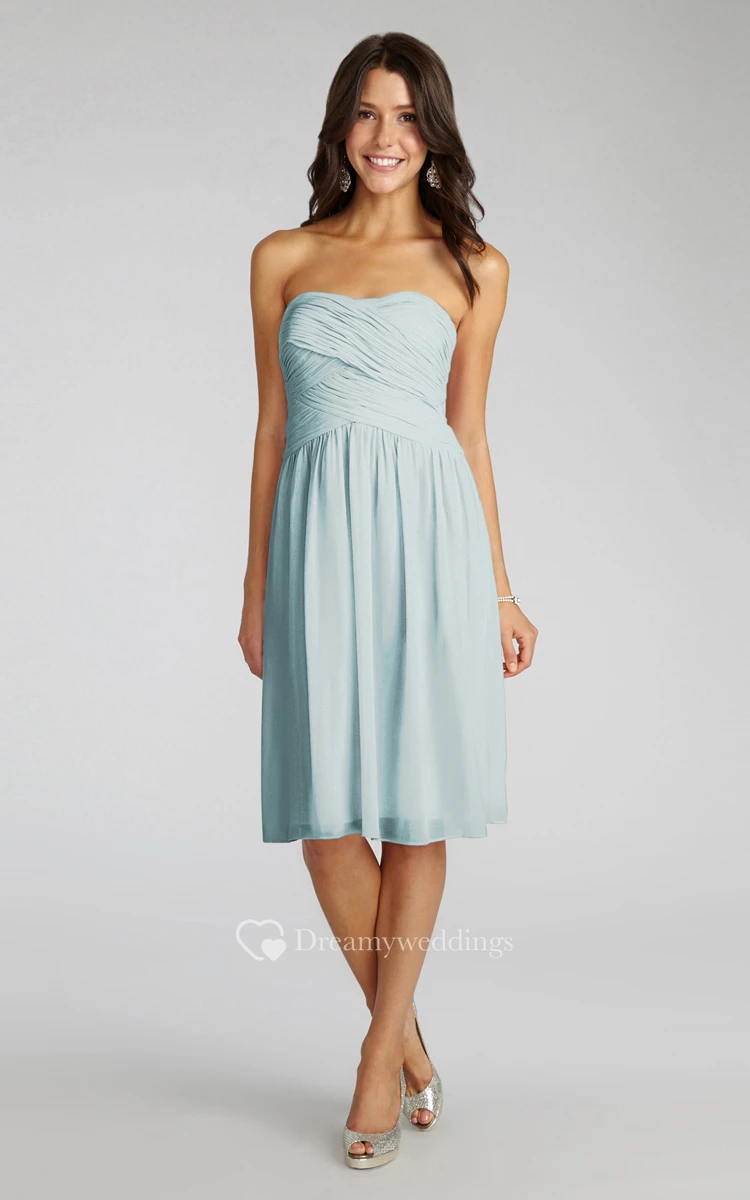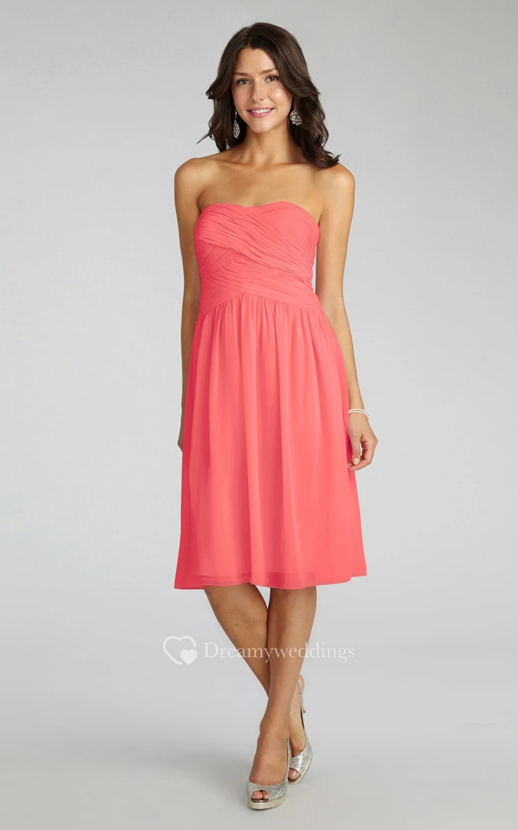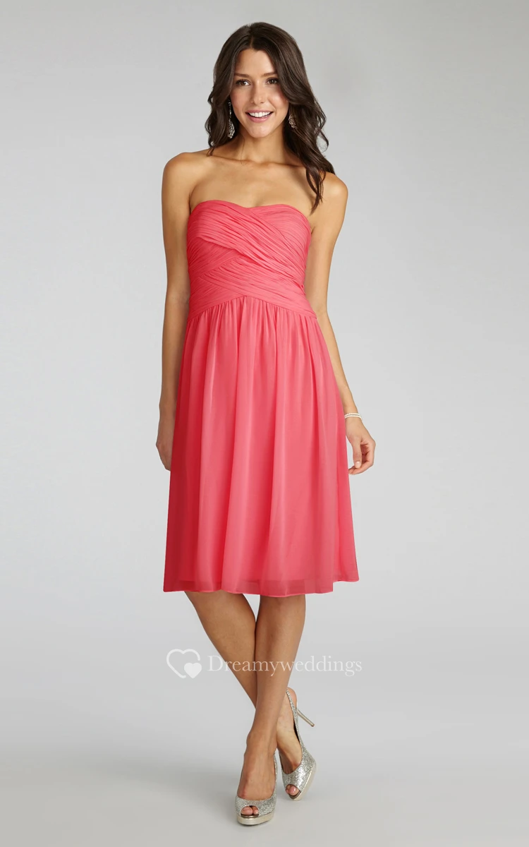 Chiffon Short Strapless Dress With Crisscross Ruching