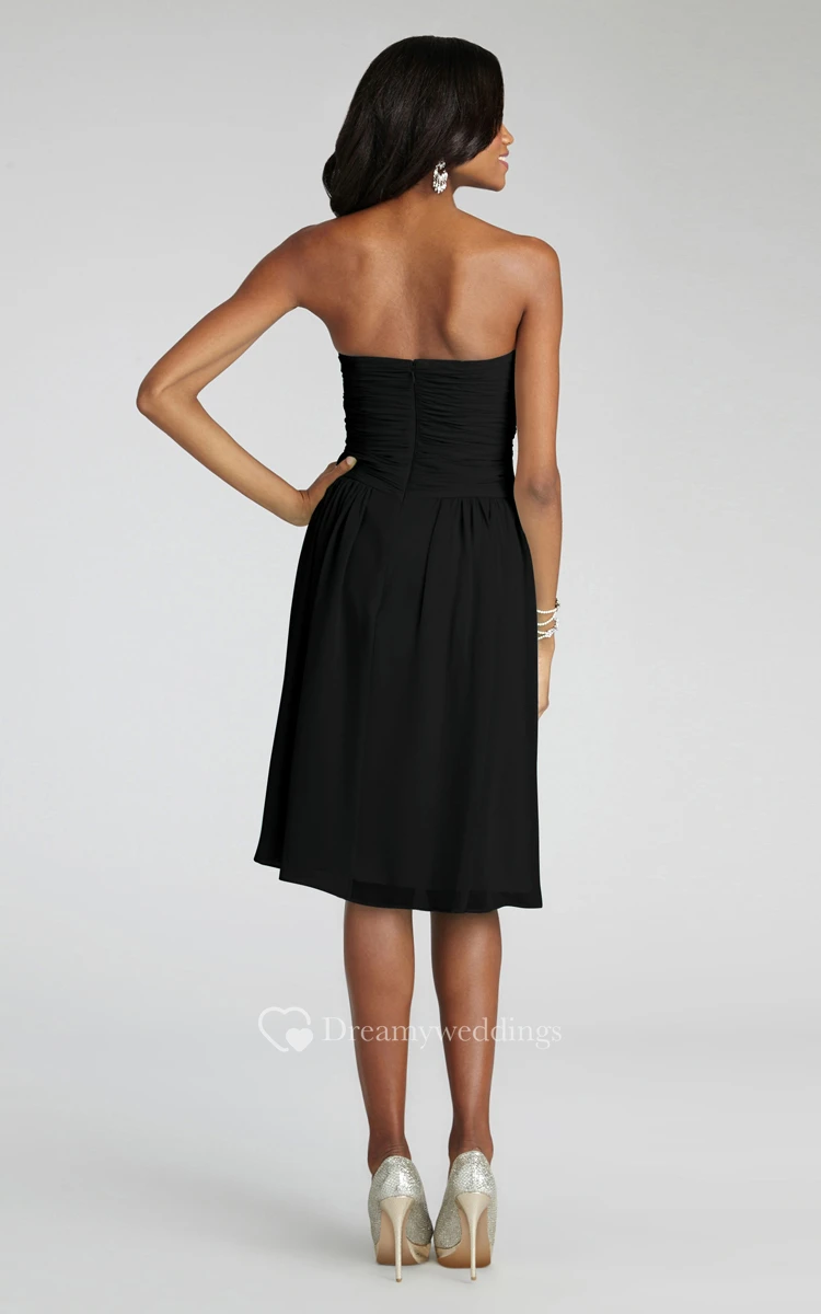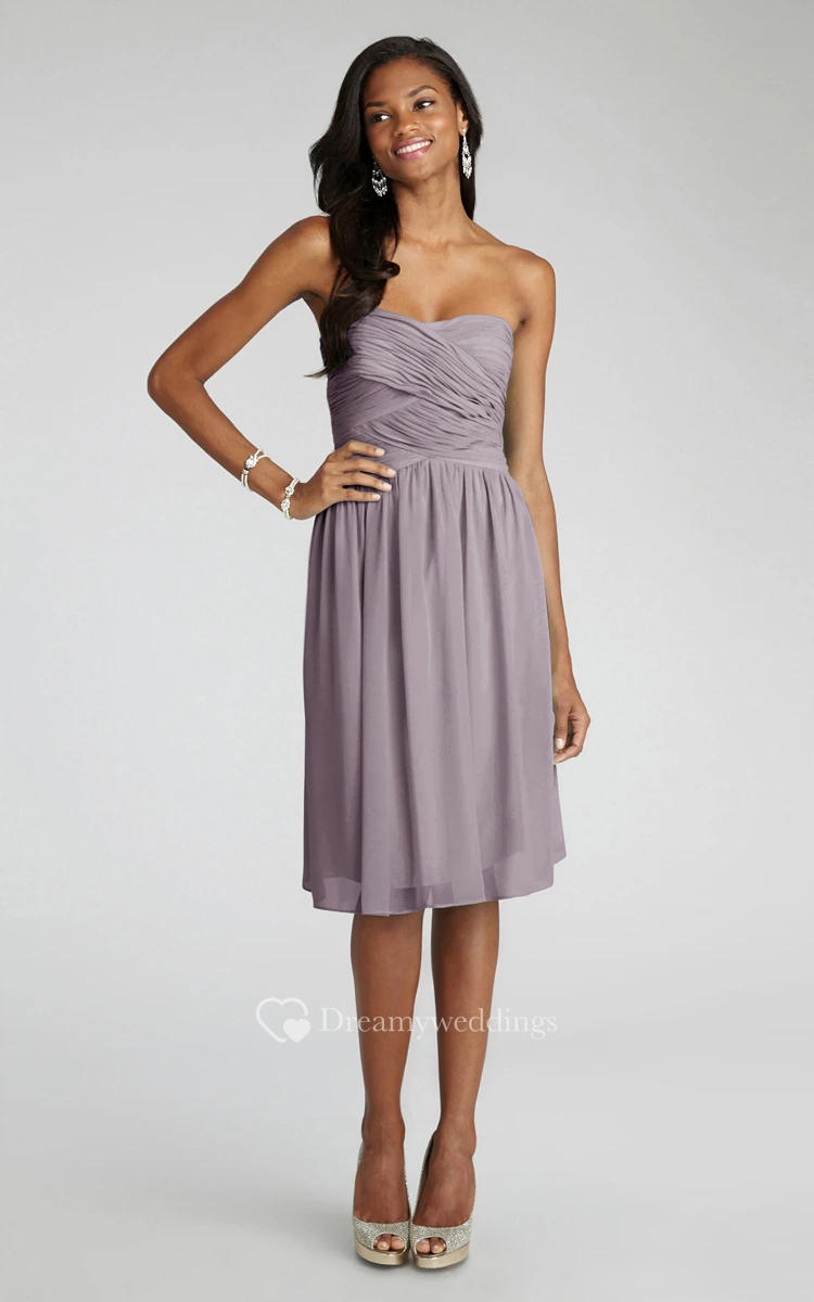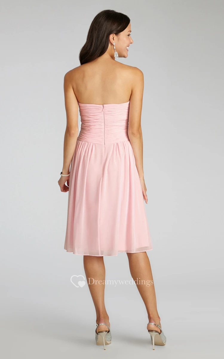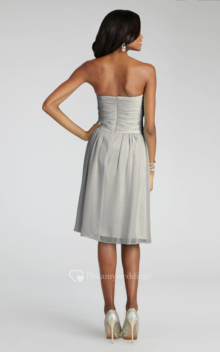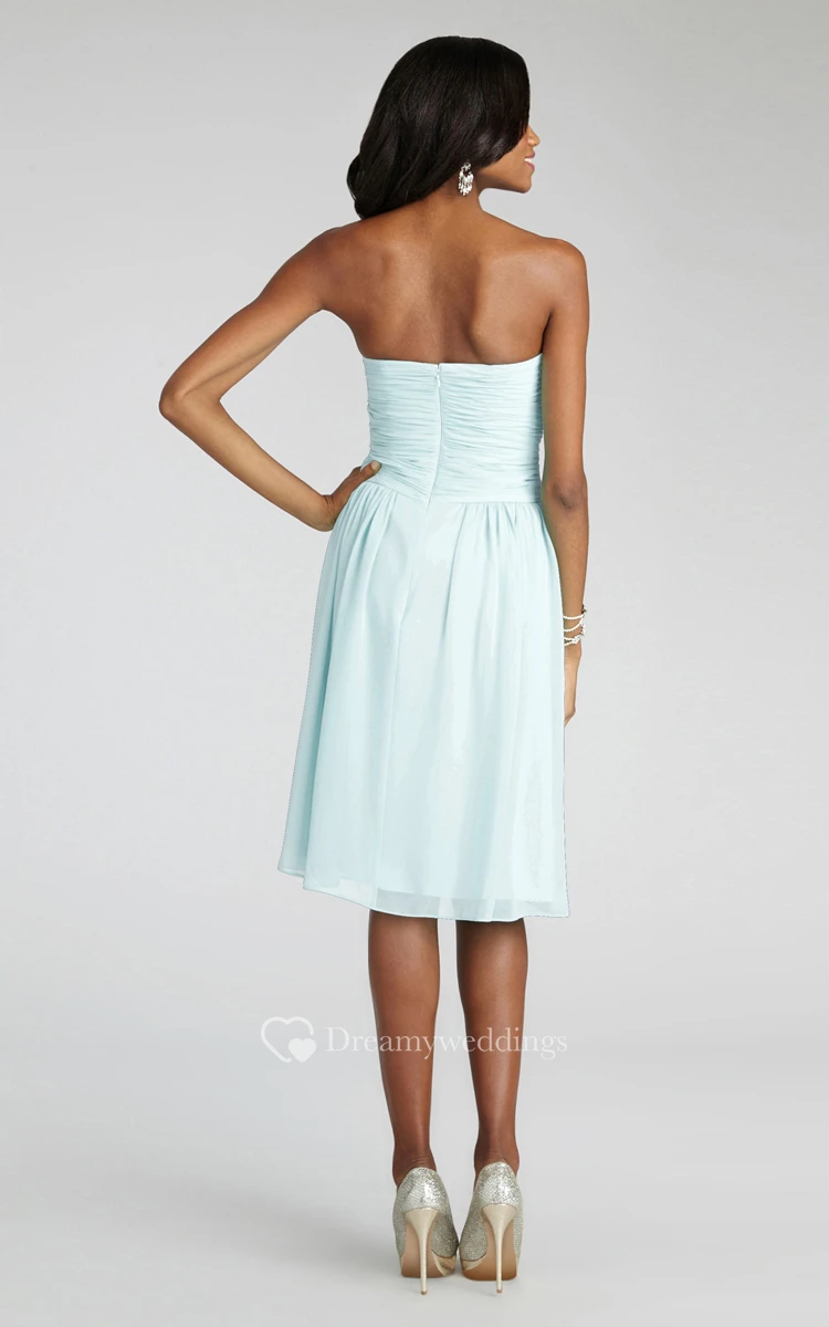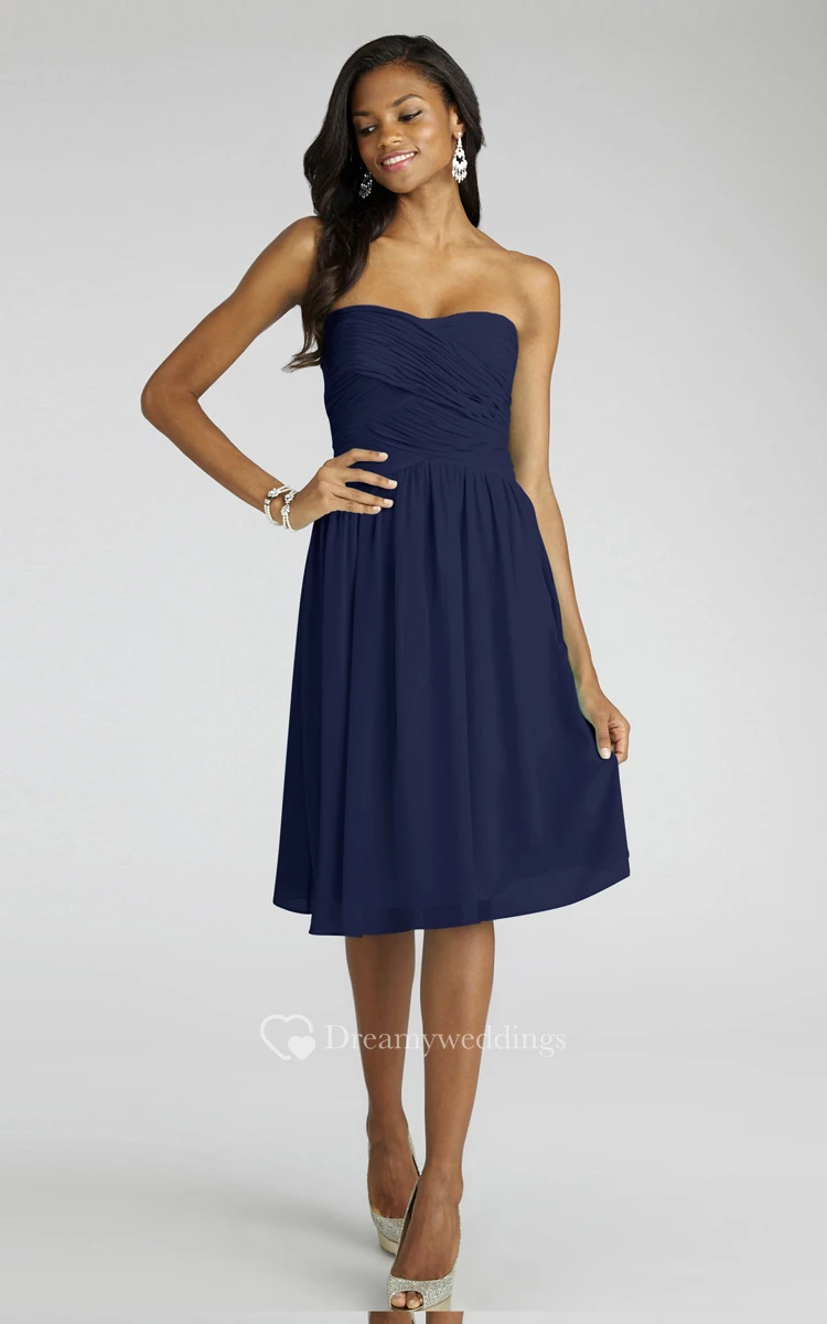 Chiffon Short Strapless Dress With Crisscross Ruching