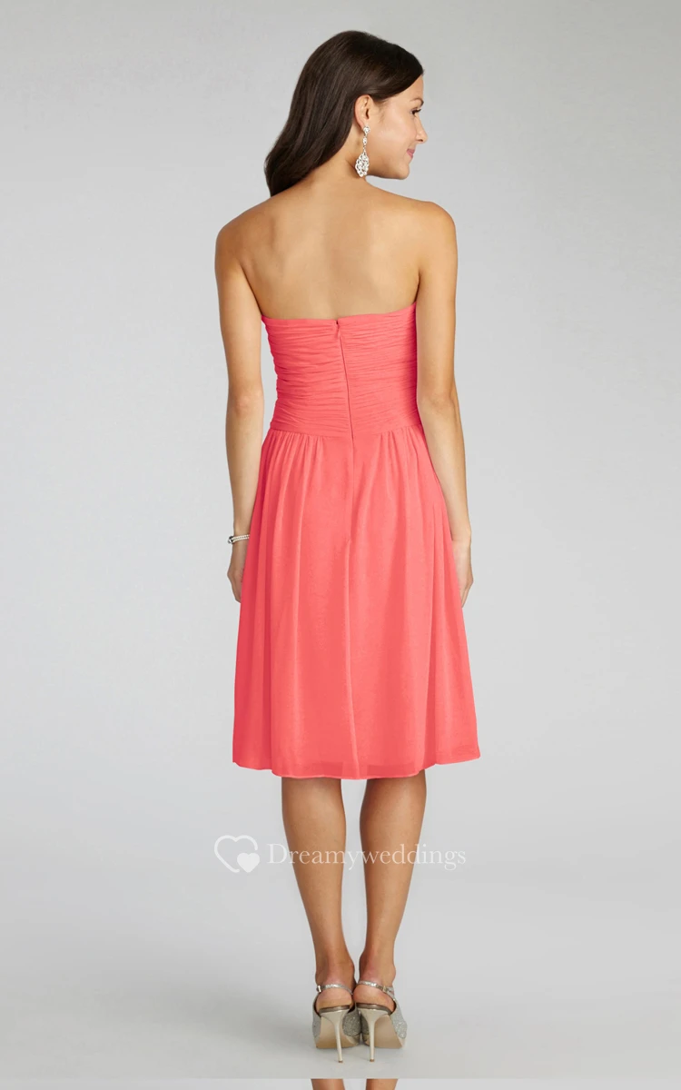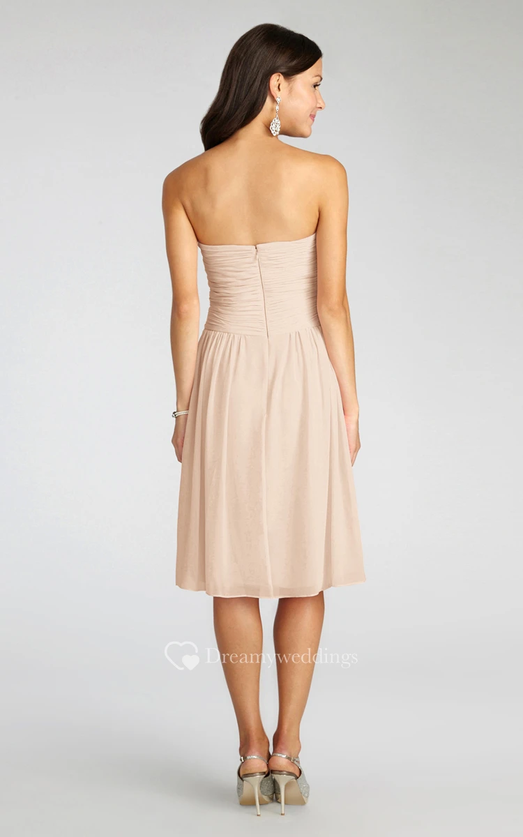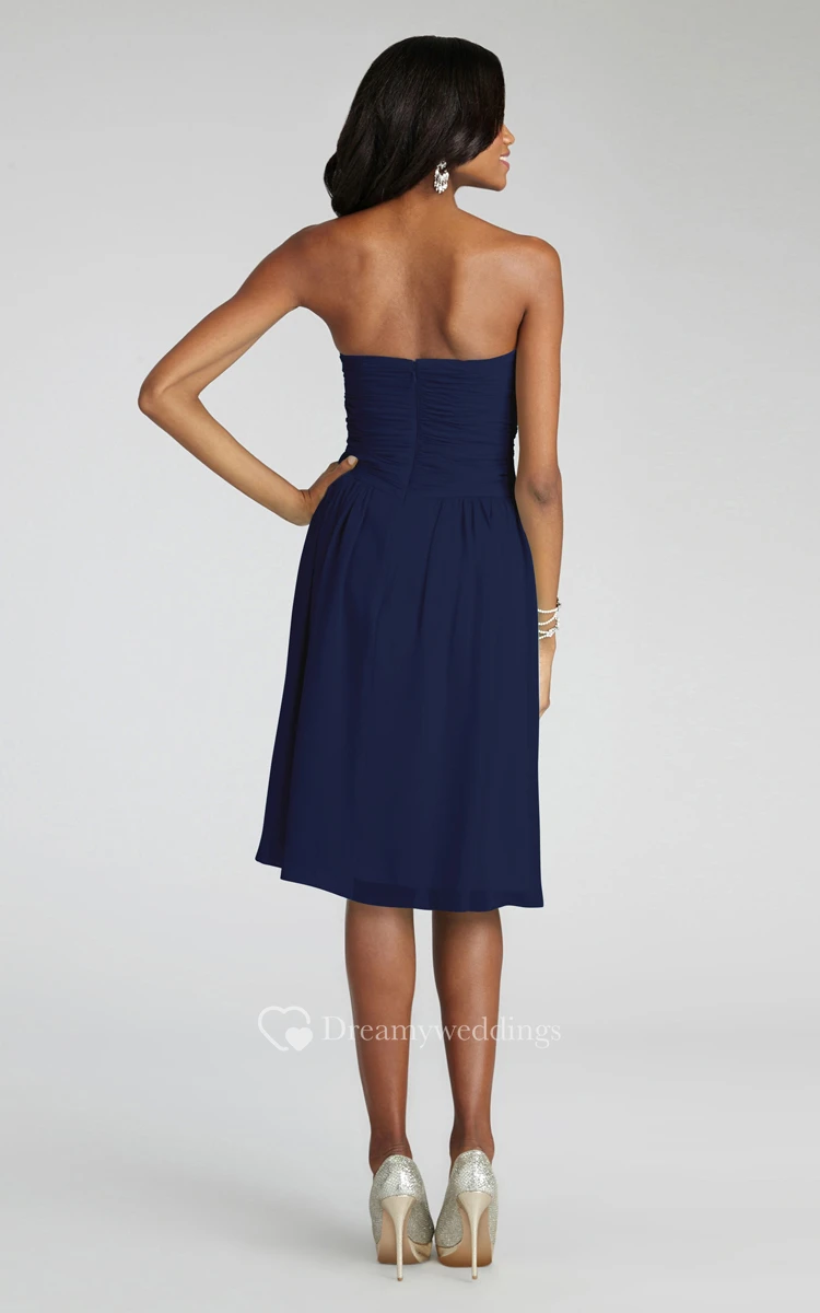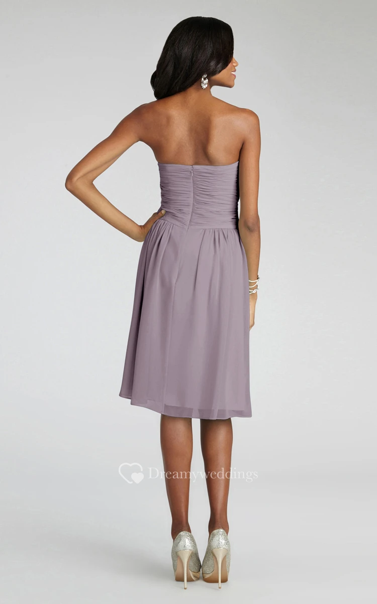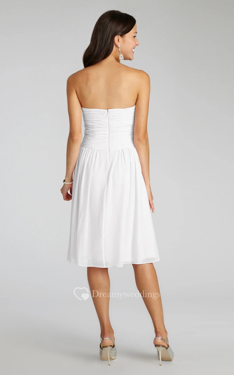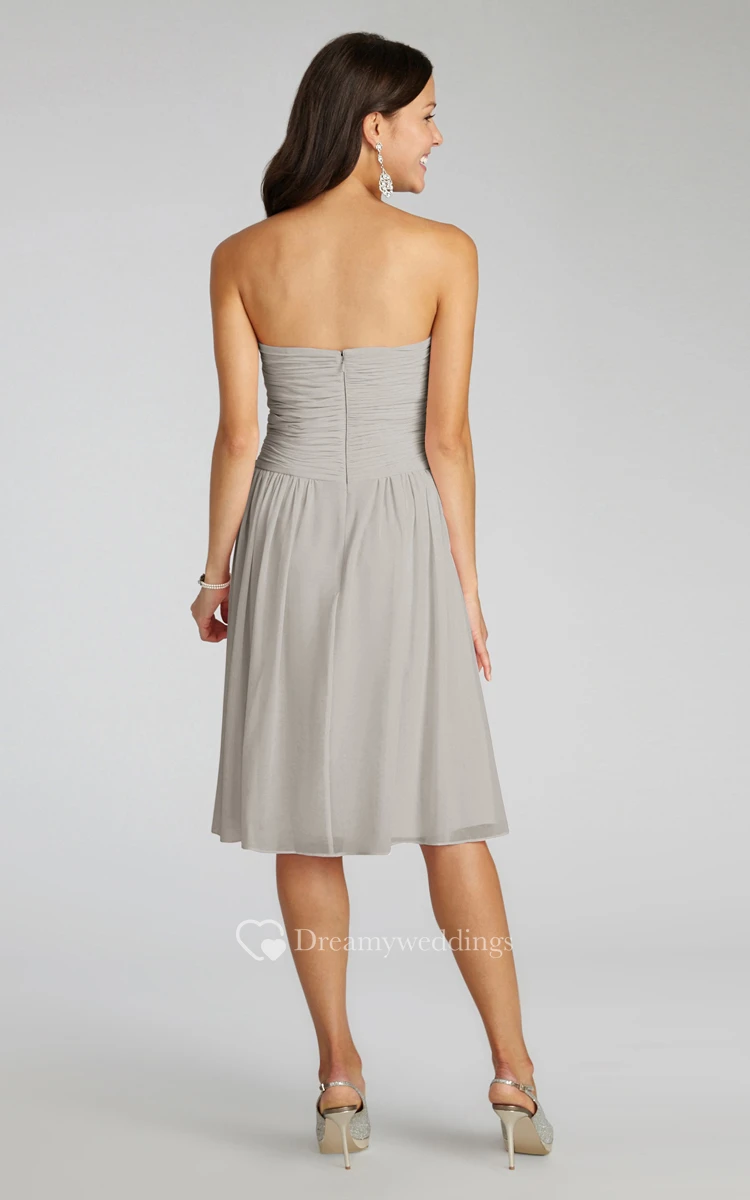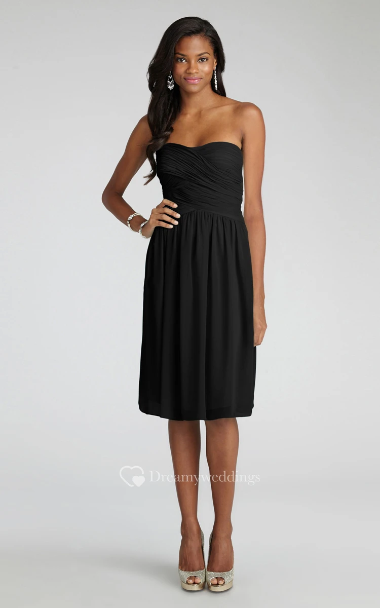 Chiffon Short Strapless Dress With Crisscross Ruching