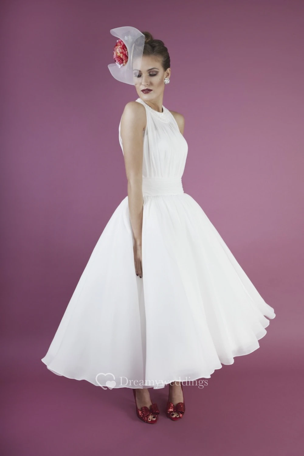 Chiffon Sleeveless A-line Vintage Jewelry Neckline Dress With Sash And Pleats