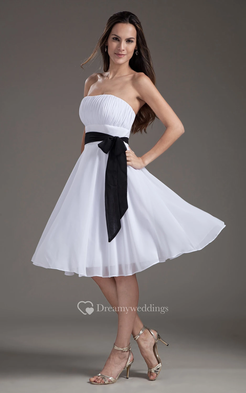 Chiffon Strapless Knee-Length Dress With Sash and Bow