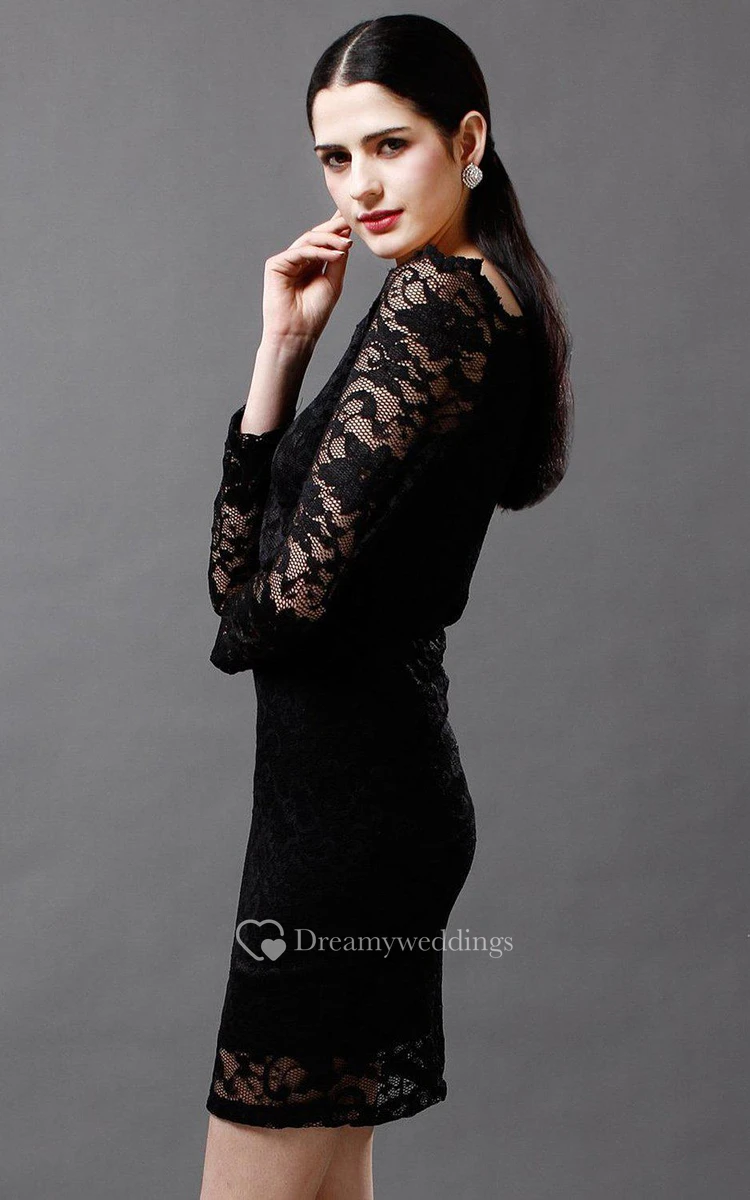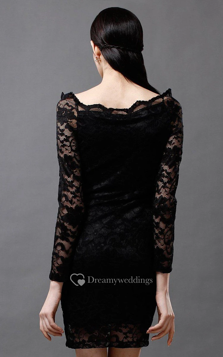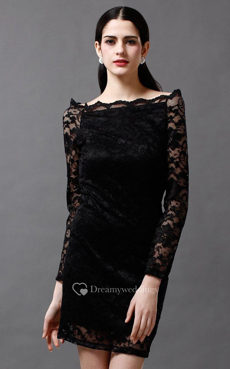 Classic Bateau-neck Lace Short Dress With Long Sleeves