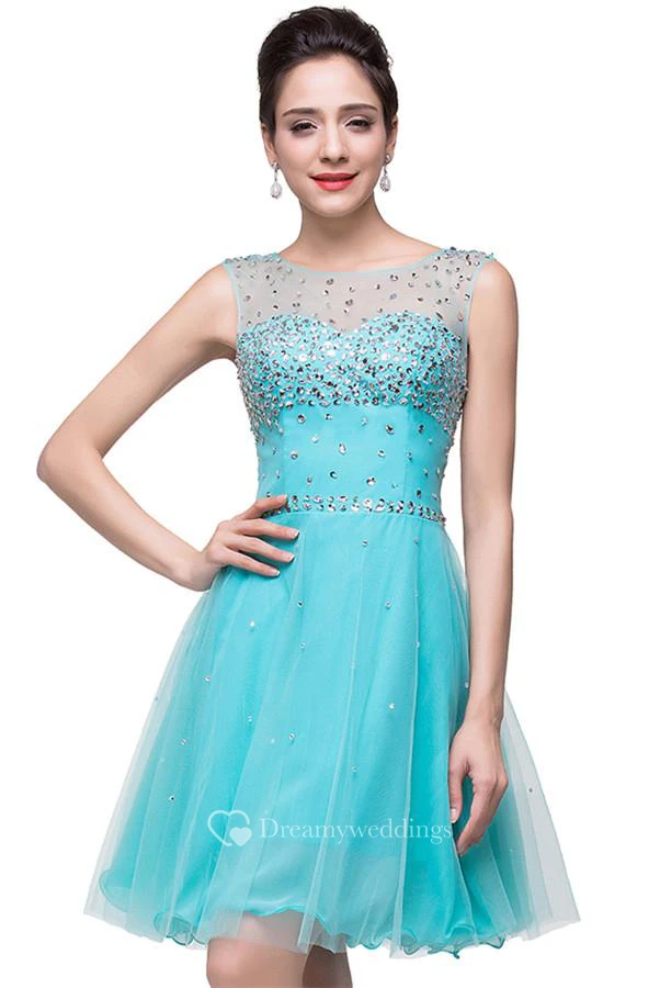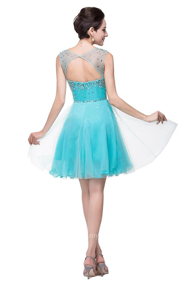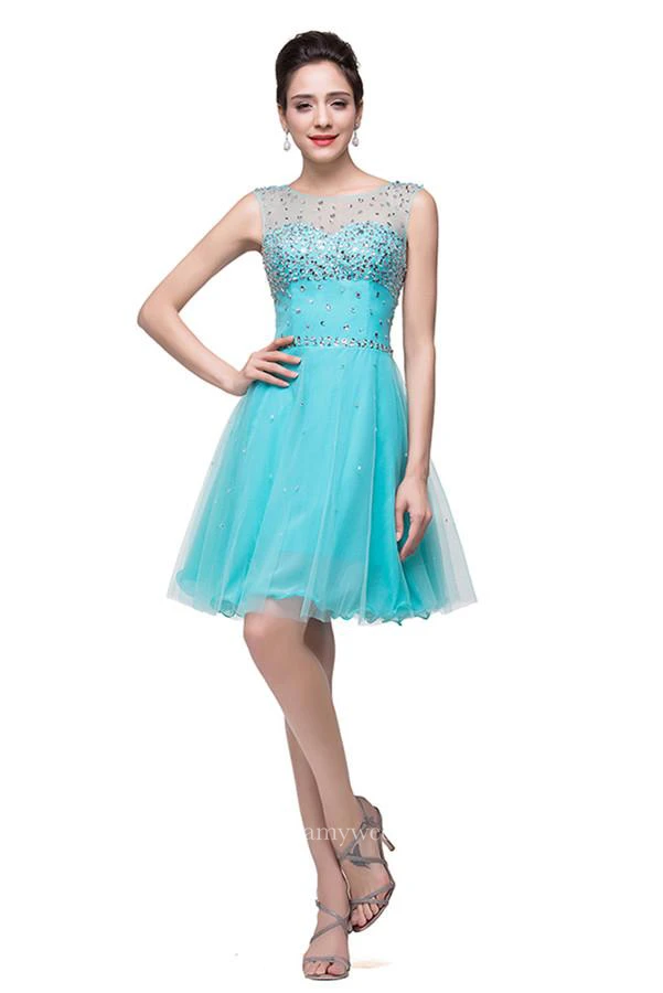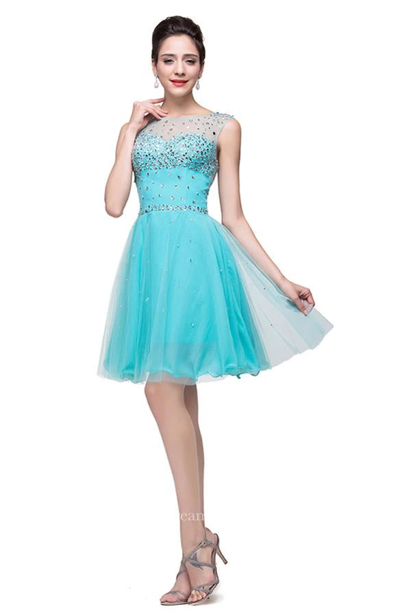 Classic Sleeveless Tulle Short Homecoming Dress With Crystals