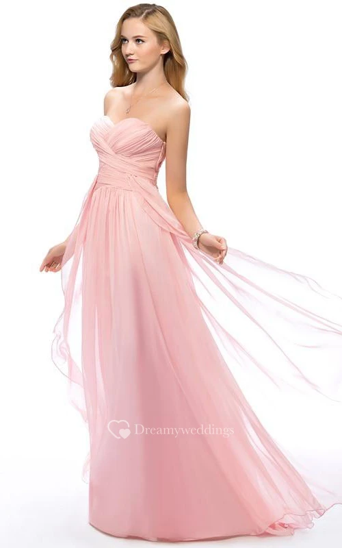 Concise A-Line Sweetheart Full Length Ruched Prom Dress
