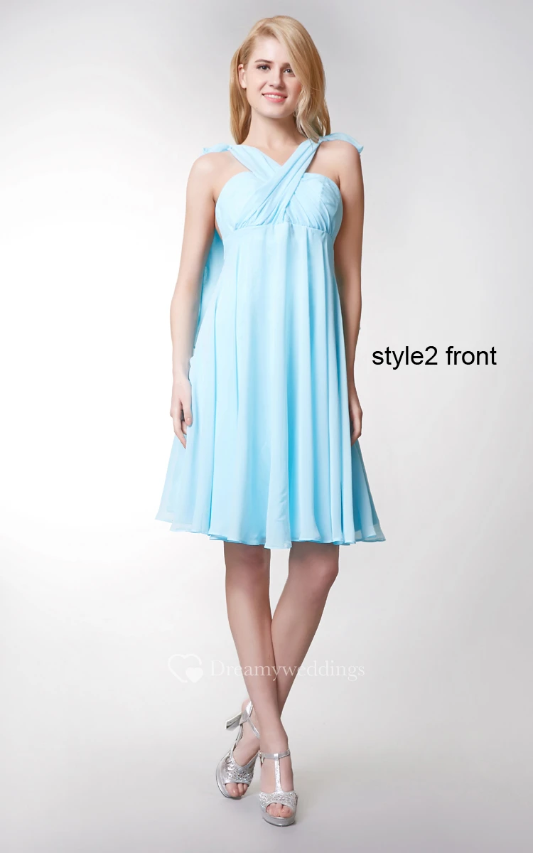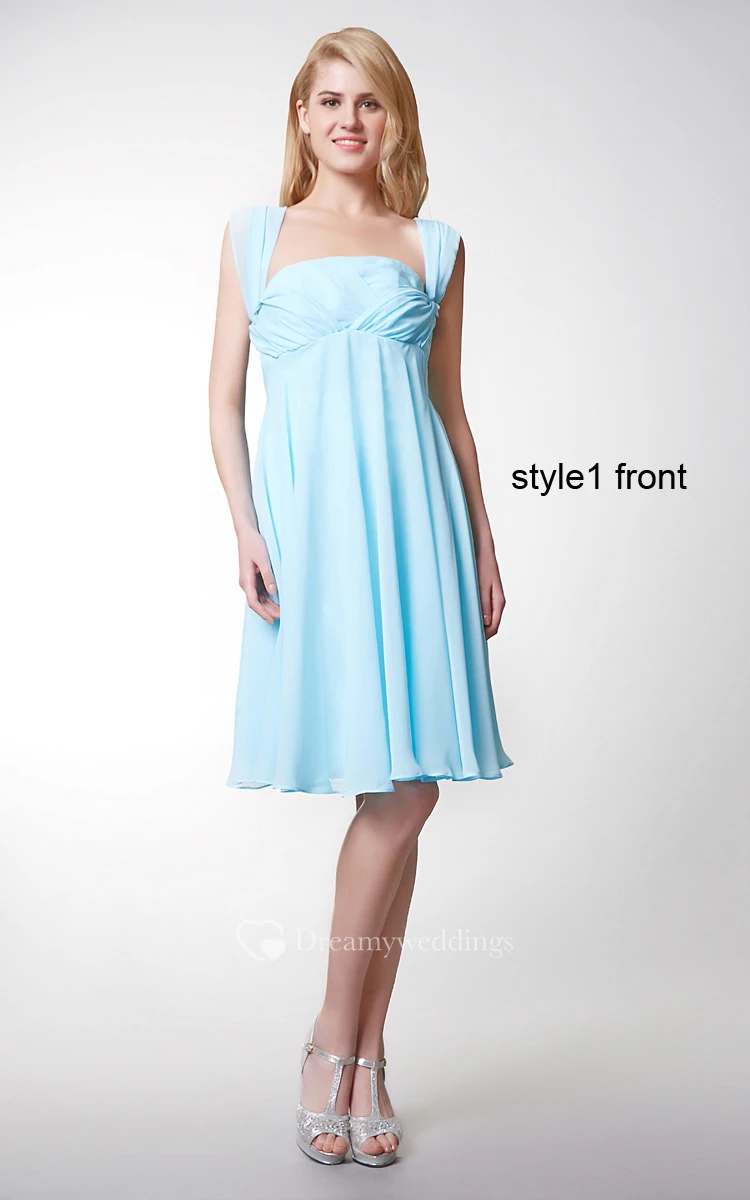 Convertible Cap Sleeve Short Chiffon Dress With Pleats