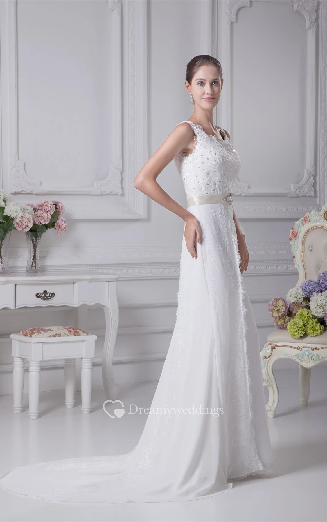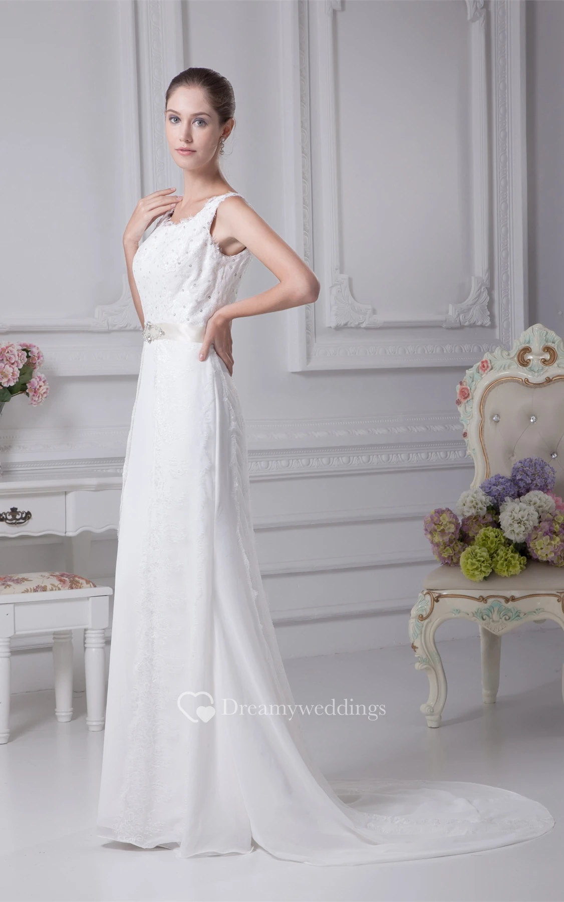 Country-Style Sheath Sleeveless Broach and Dress With Appliques