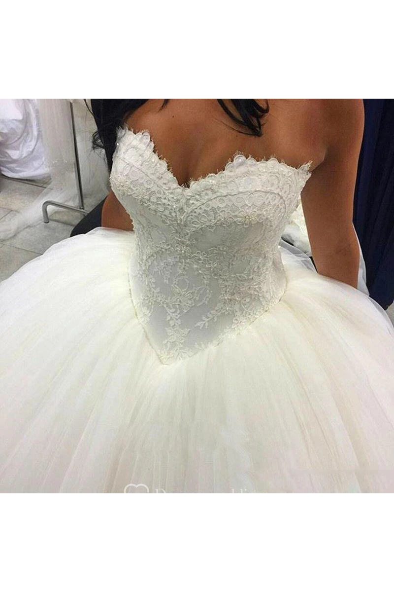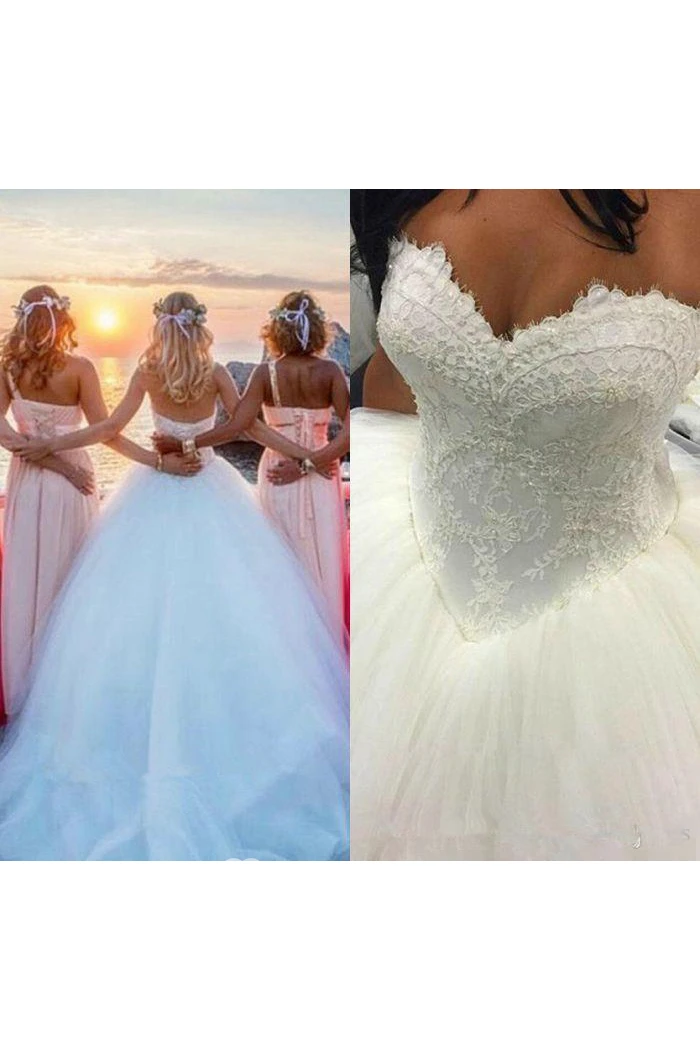 Country Vintage Sweetheart Backless Lace Tulle Princess Wedding Ball Gowns