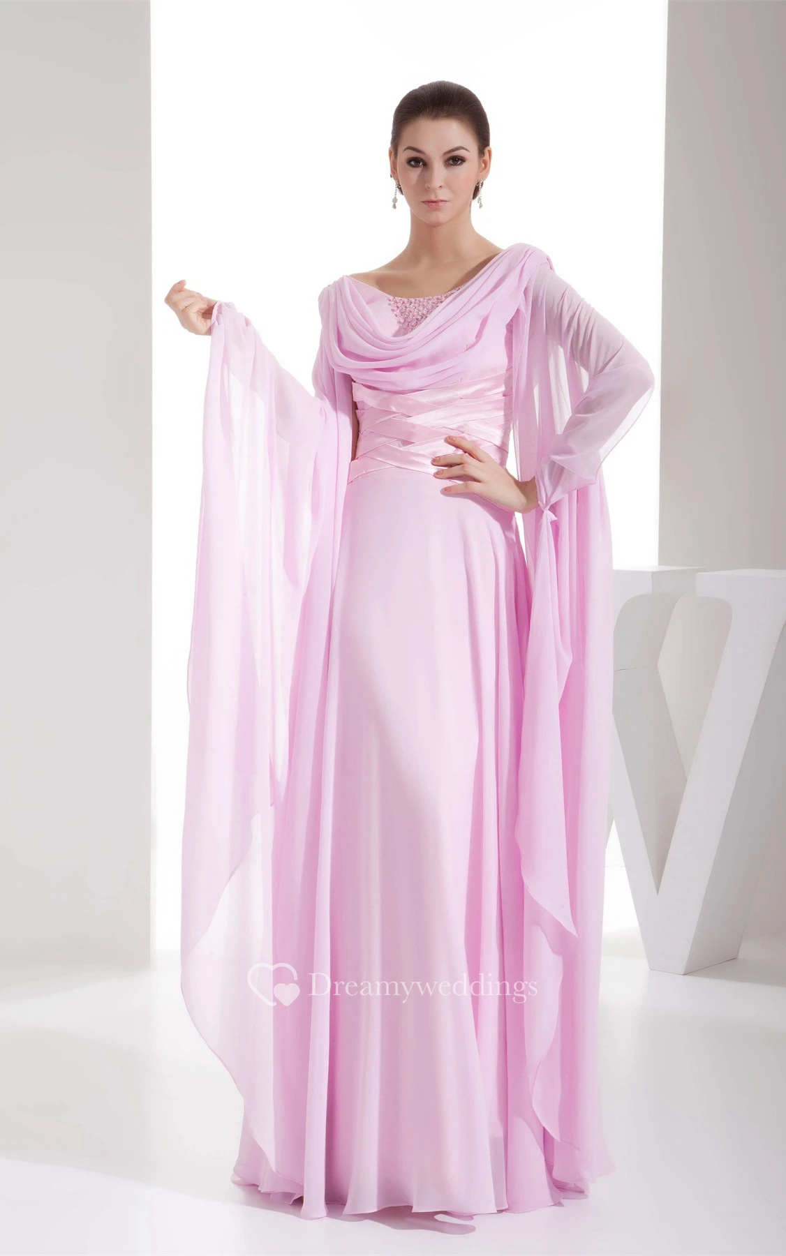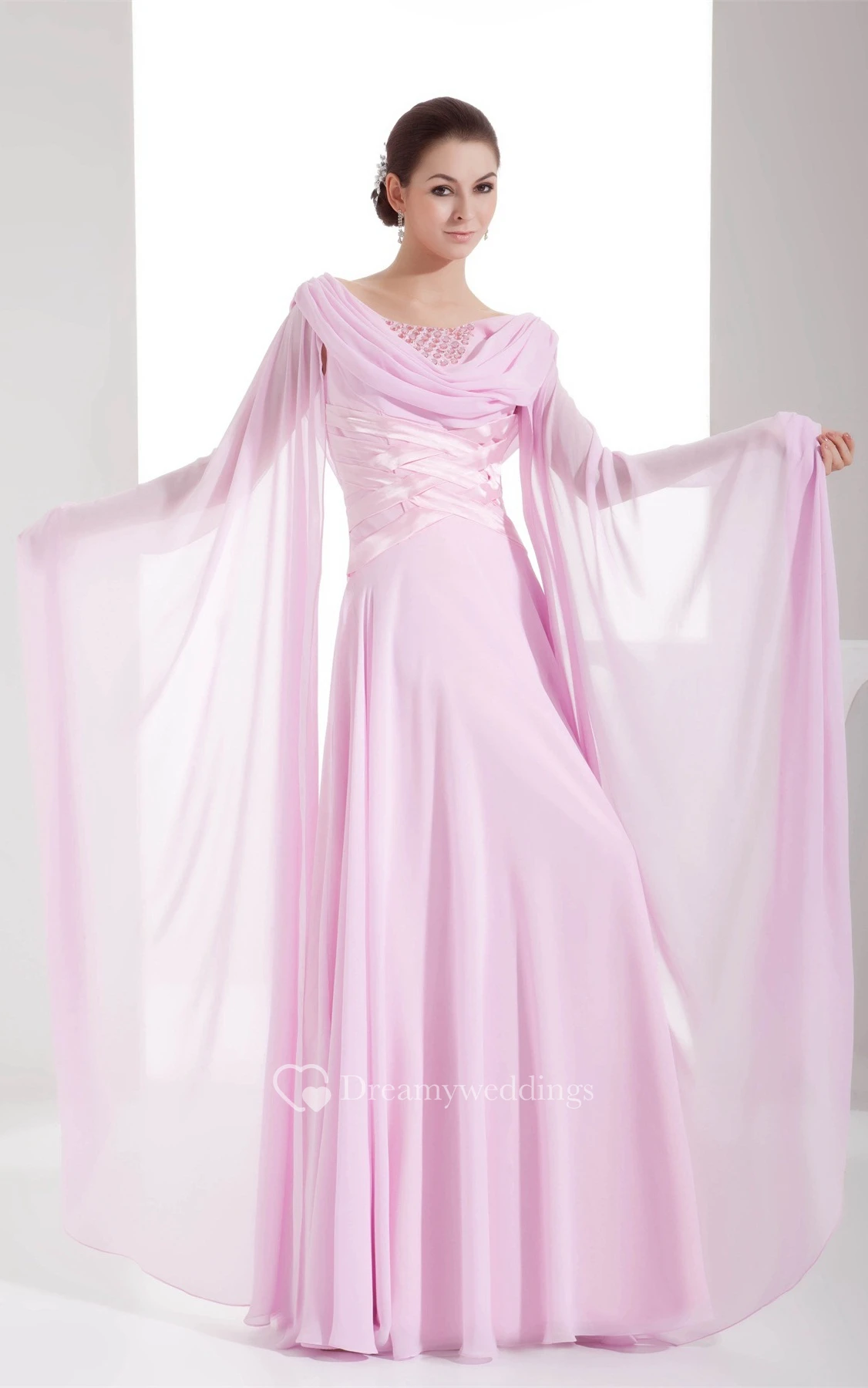 Cowl-Neck Floor-Length Chiffon Stress and Dress With Ruching