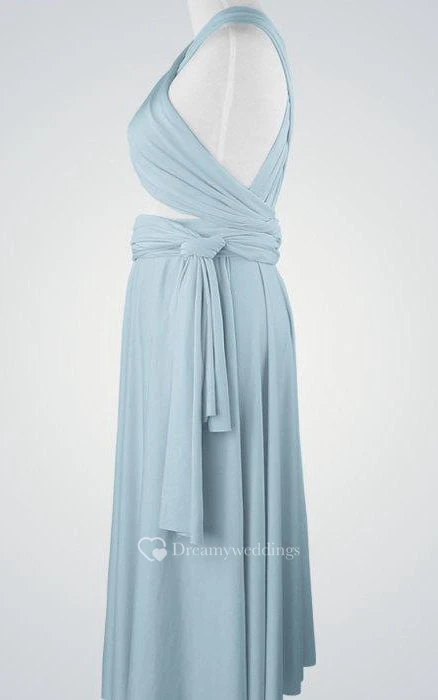 Criss-cross Bandage Top Pleated Chiffon Knee Length Dress With Sash