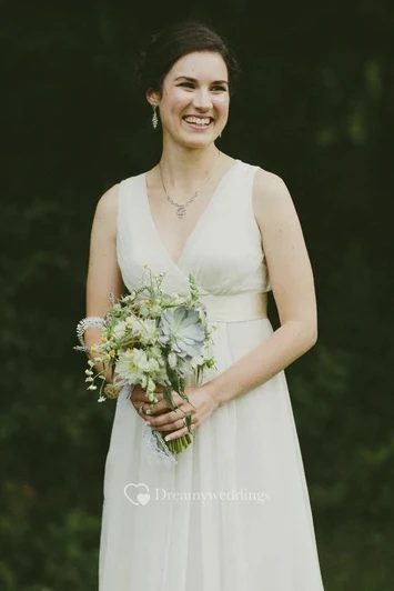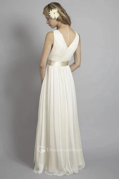 Criss Cross Plunging Chiffon Sleeveless Empire Wedding Gown With Low V-back