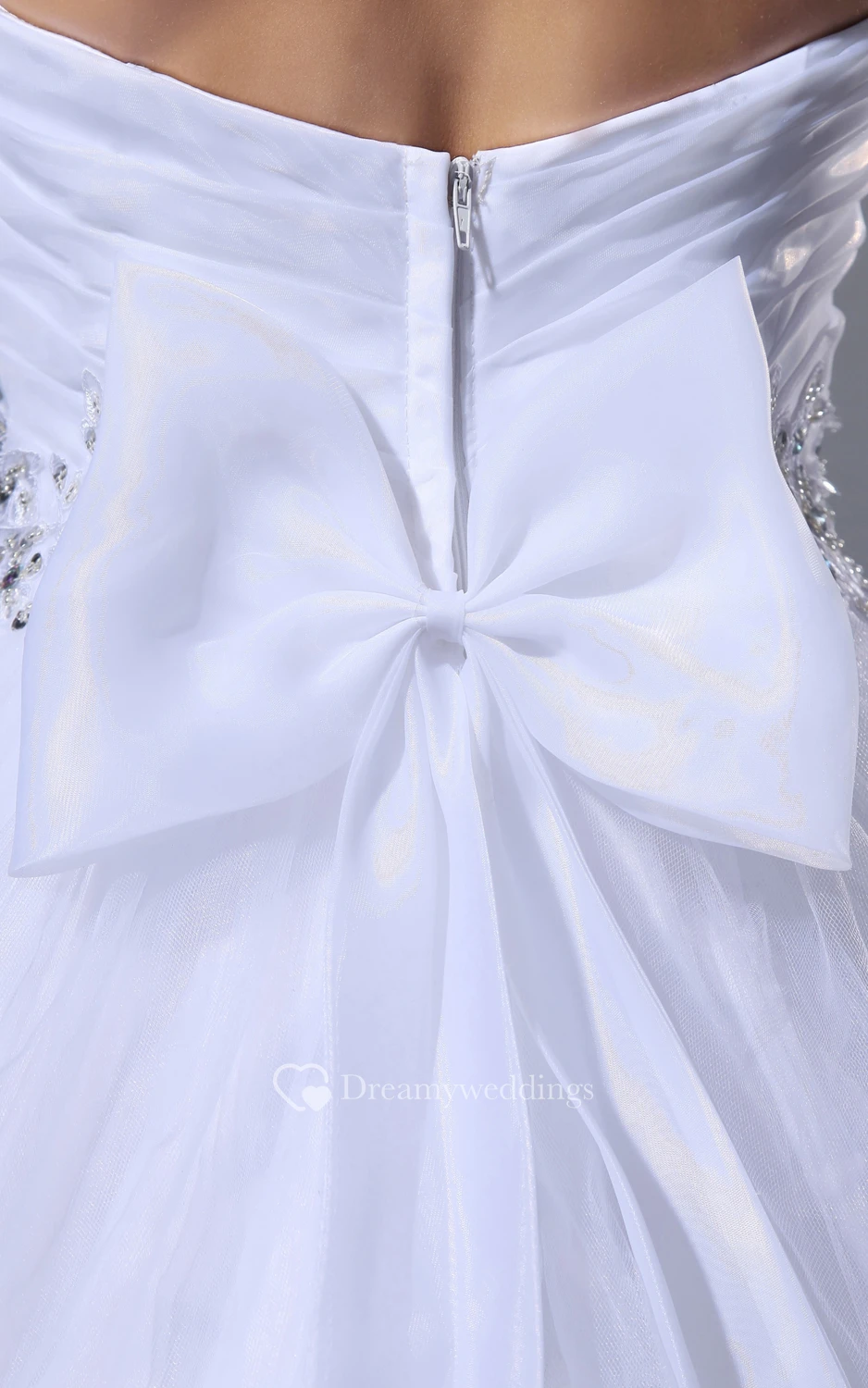 Criss-Cross Ruching Beaded Sash A-Line Ball Gown With Pleatings