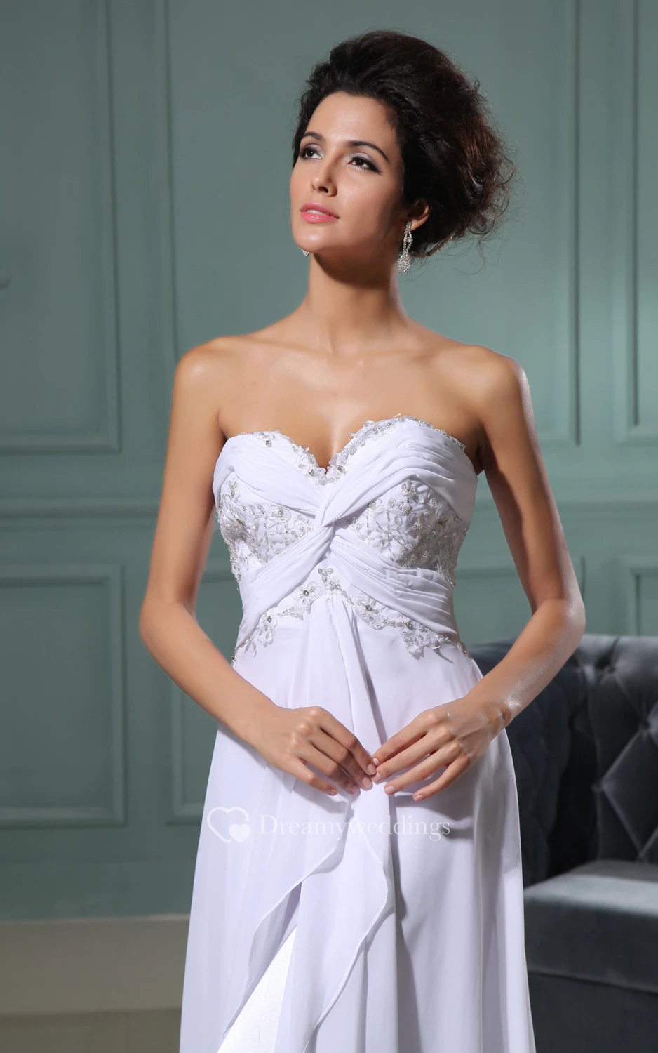 Criss-Cross Ruching Sweetheart Chiffon Dress With Brush Train