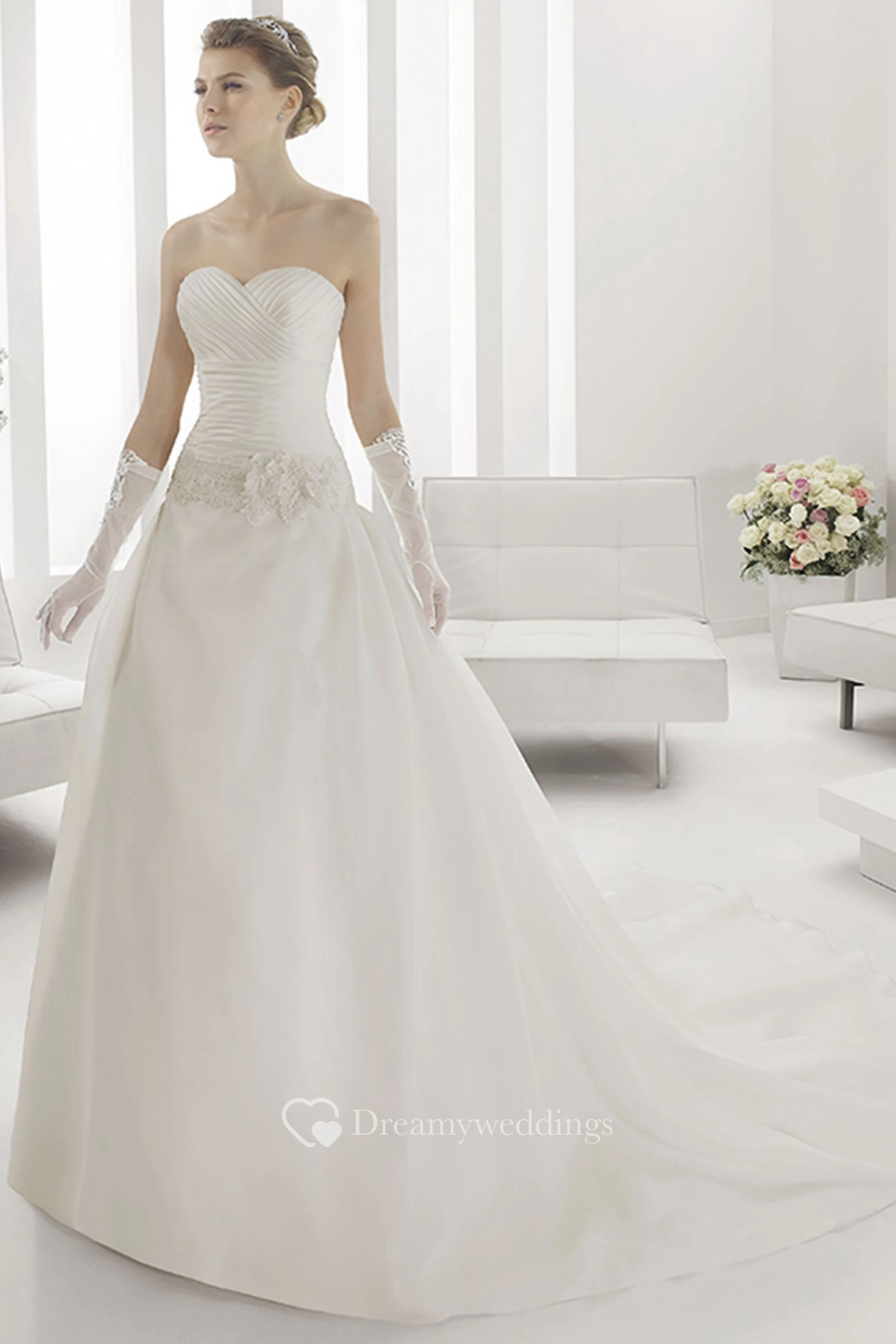 Criss-cross Sweetheart Top Lace Drop Waist Taffeta Wedding Gown