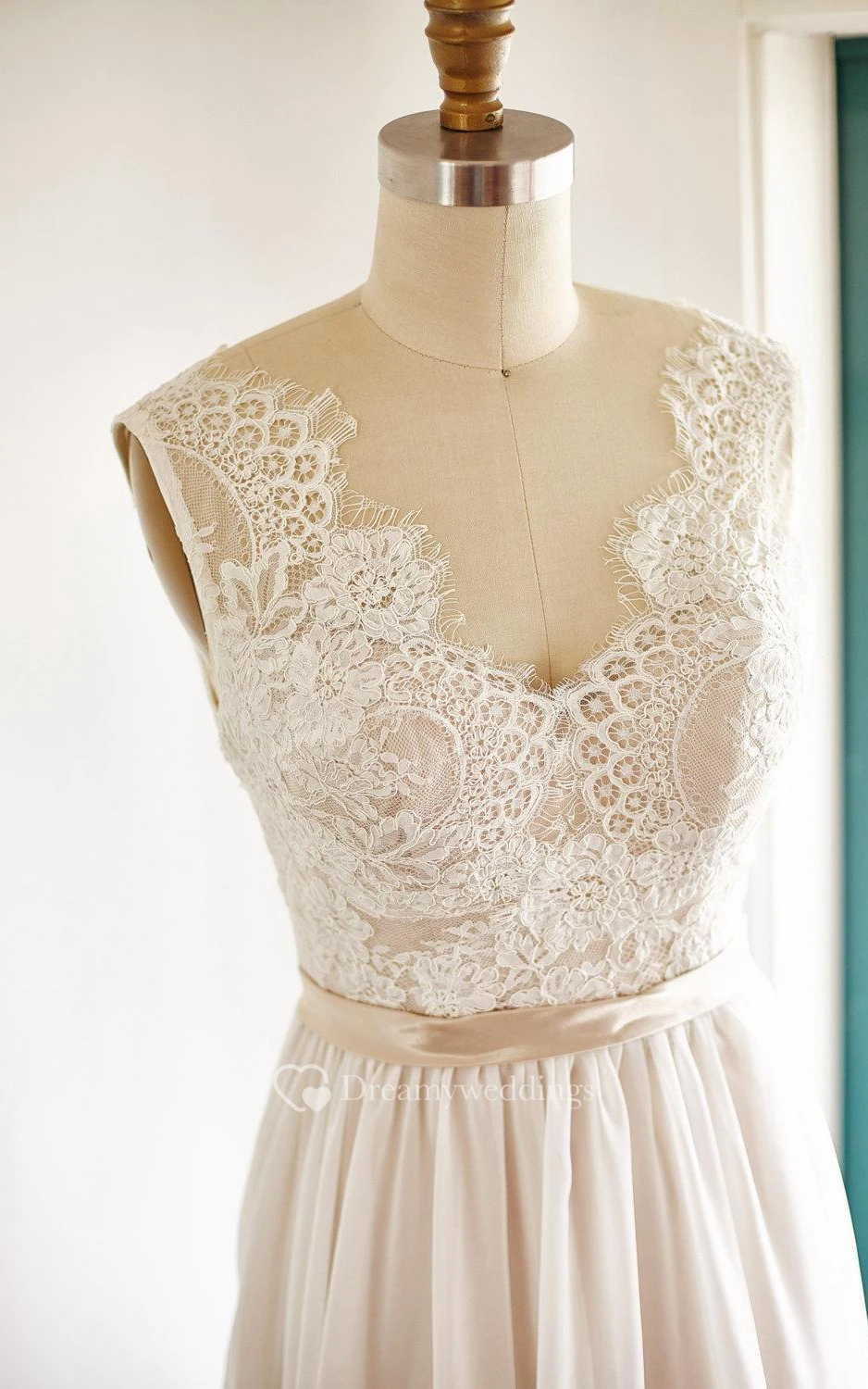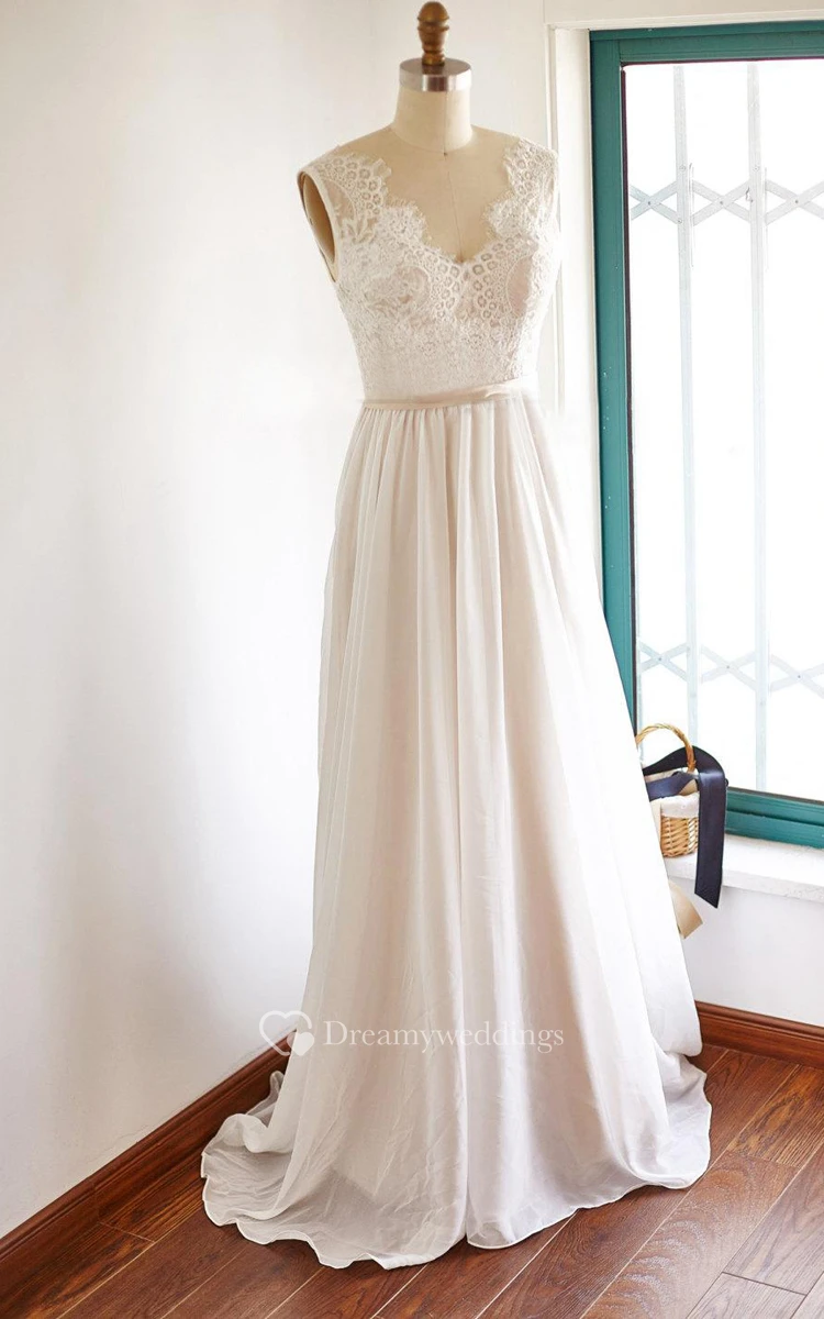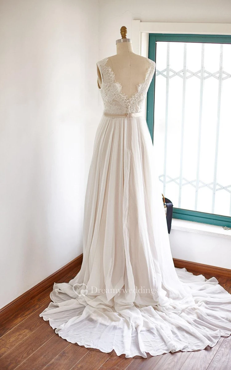 V-neck Sleeveless Chiffon Wedding Dress With Top And Sweep Train