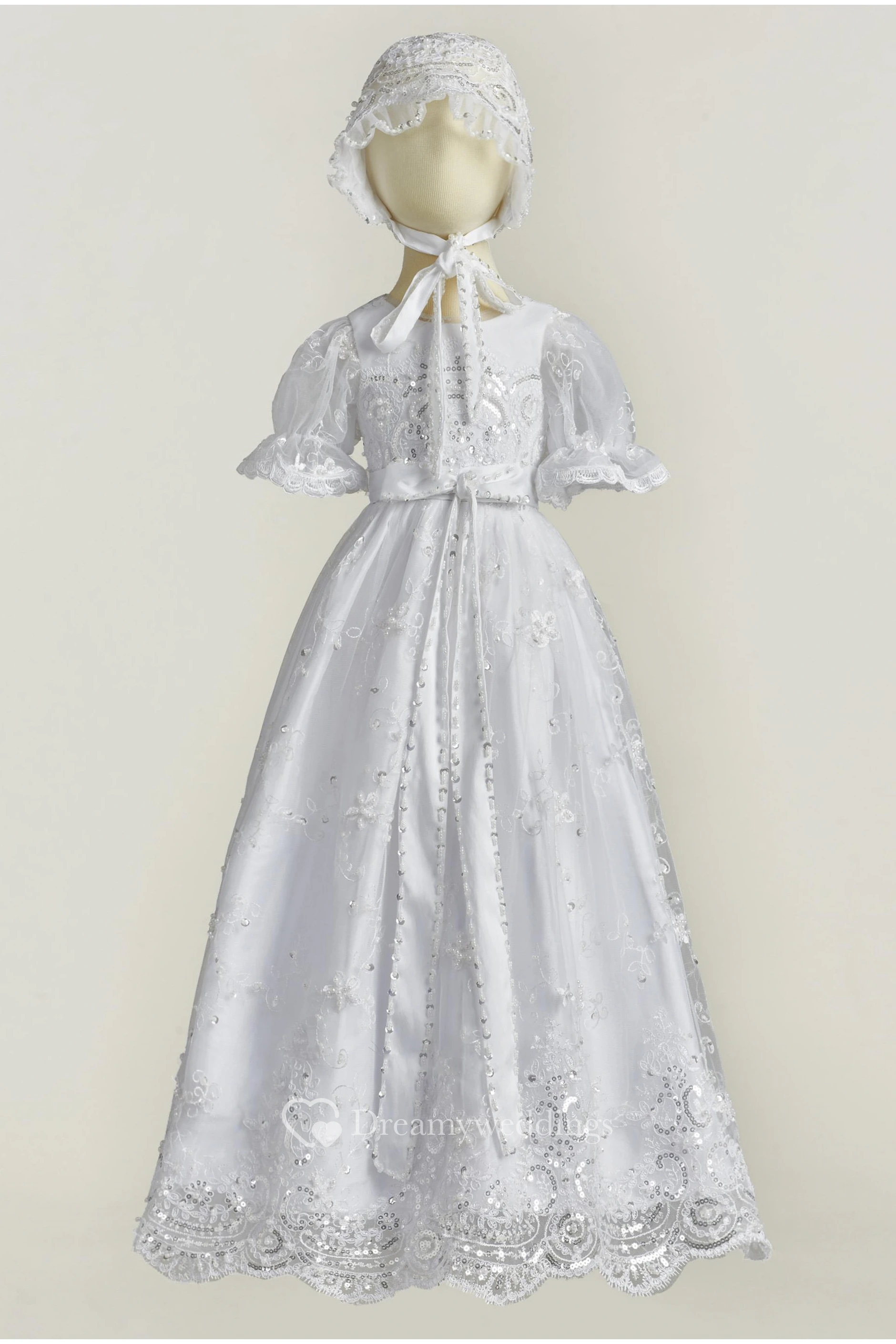 Cute Elegant Christening Gown With Lace And Bow