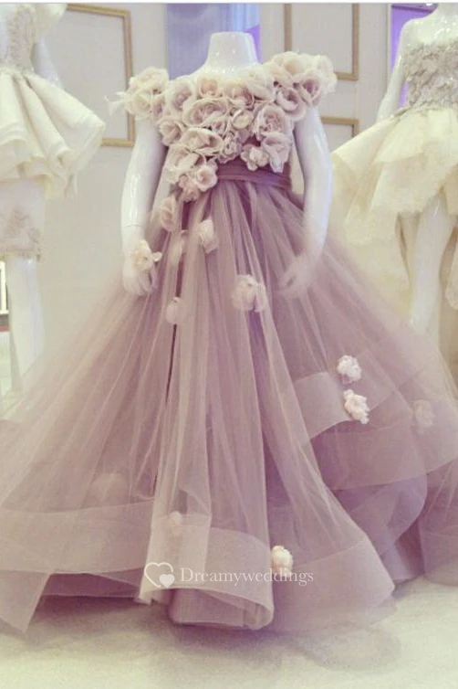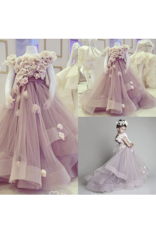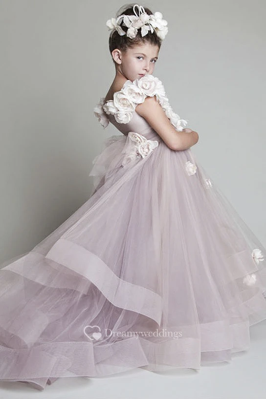 Cute Flower Girl Dress With Ruffles Sash And Flowers
