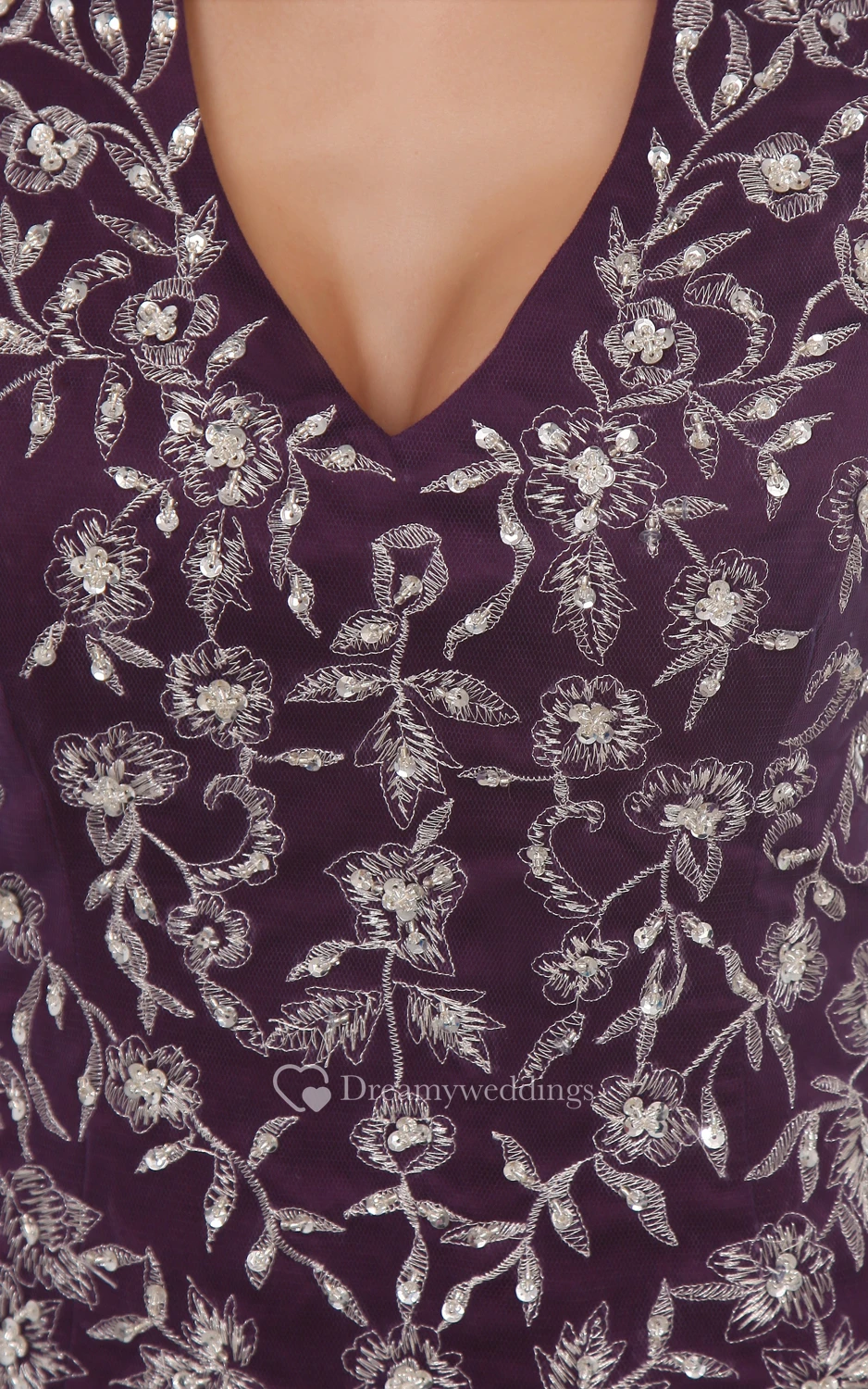 Deep V-Neck A-Line Dress With Lace Appliques and Tulle Overlay