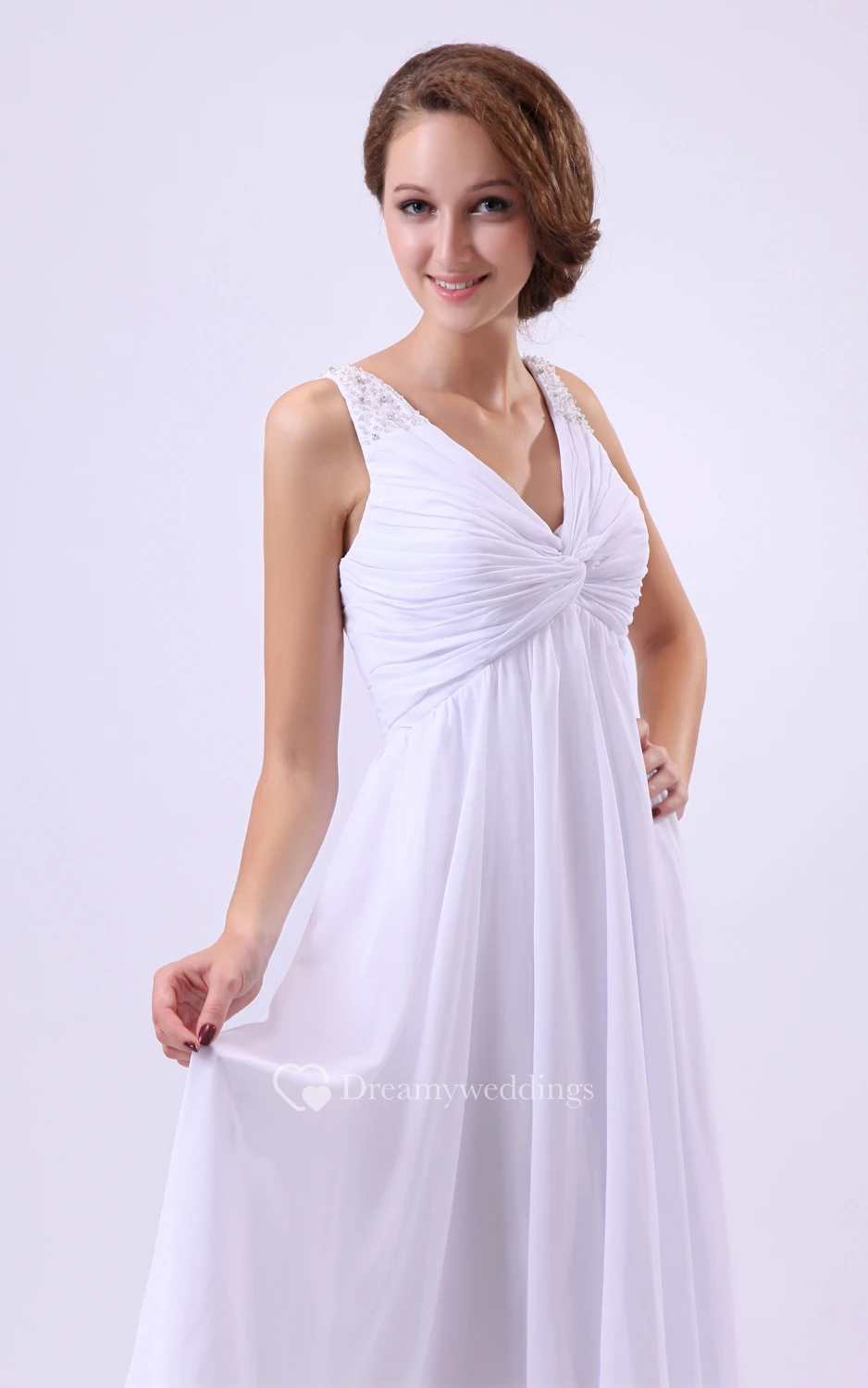 Deep V-Neck Empire Short Maternity Dress With Ruching
