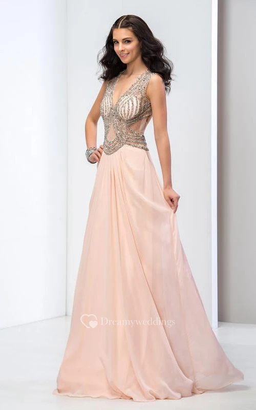 Deep-V Neck Open Back Sequins Long Prom Dress