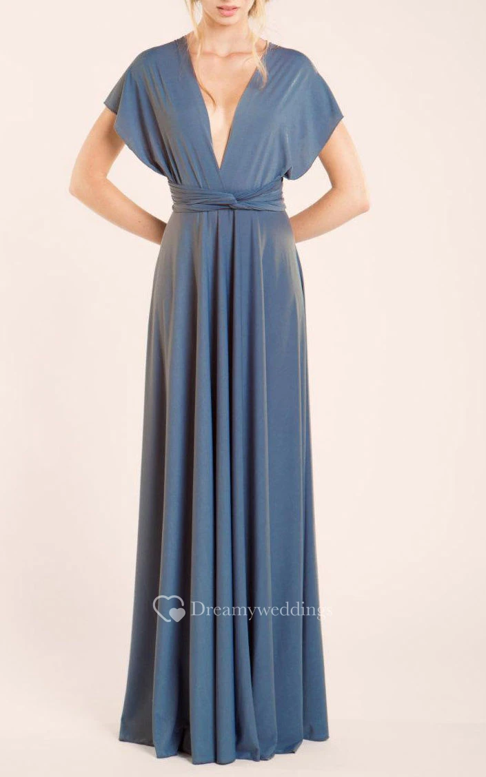 Deep V Neck Pleated A-line Jersey Long Dress With Criss Cross Back