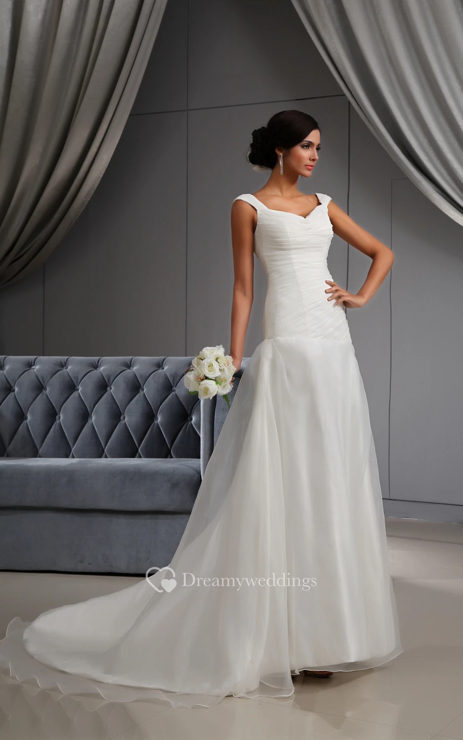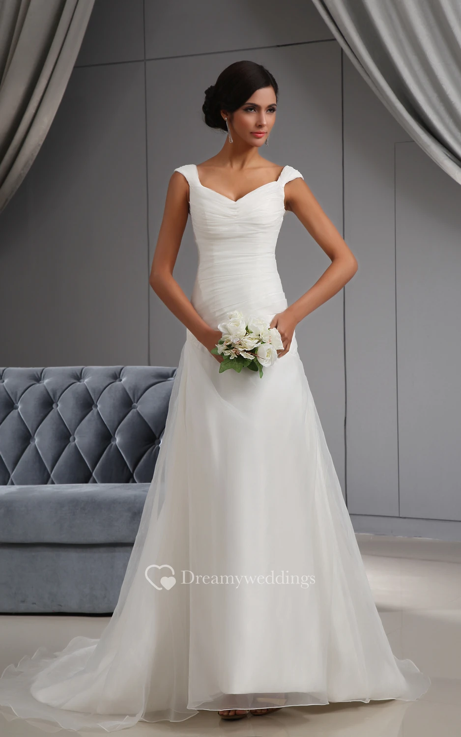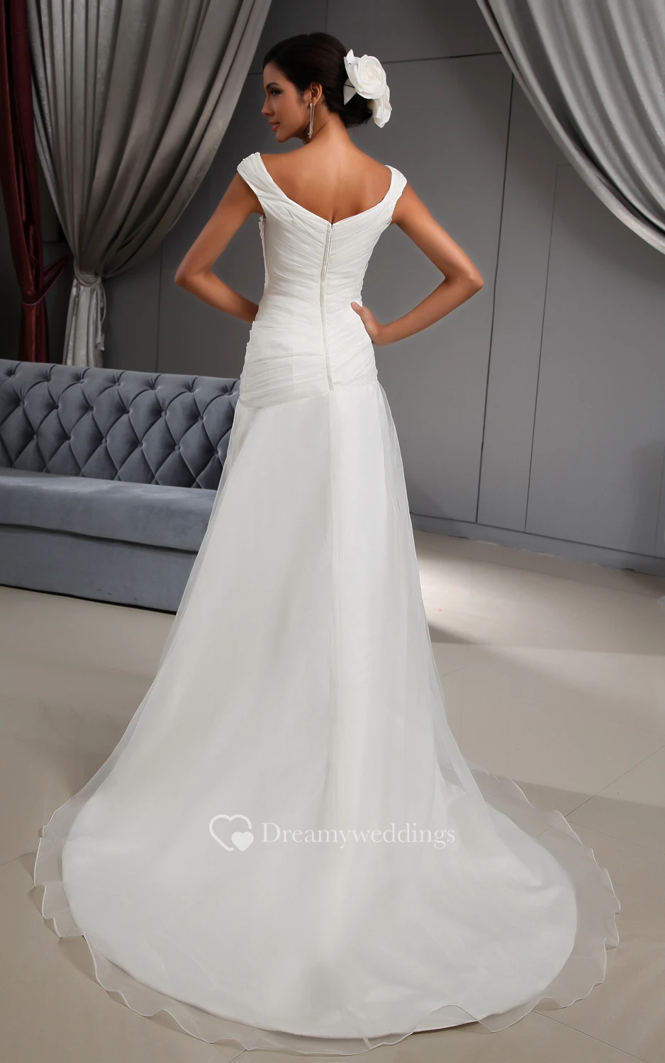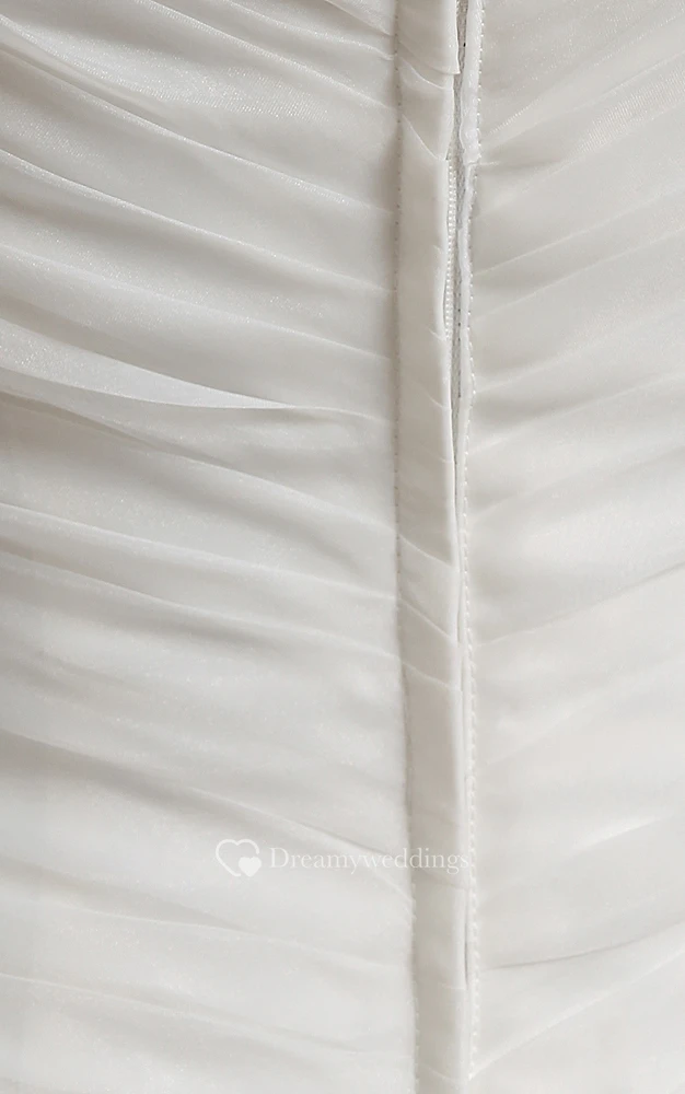 Deep V-Neck Ruching Organza Dress With Court Train