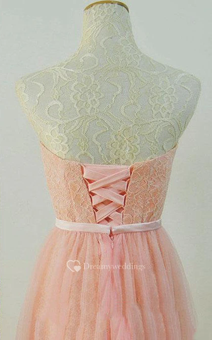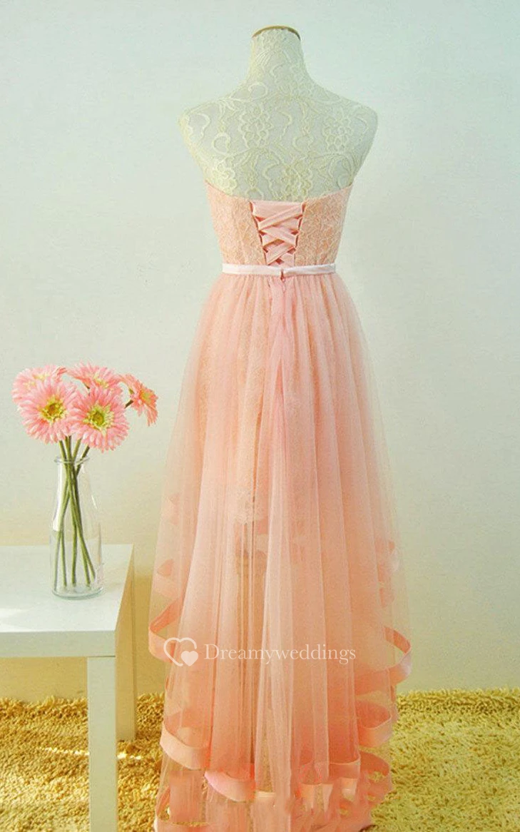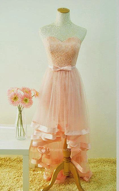 Delicate A-line High-low Sweetheart Tulle&Lace Dress With Bow