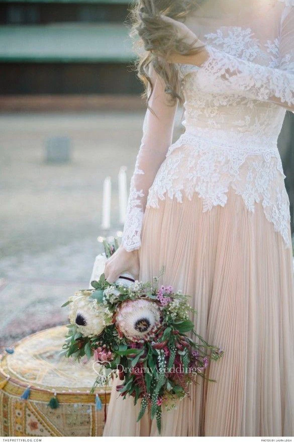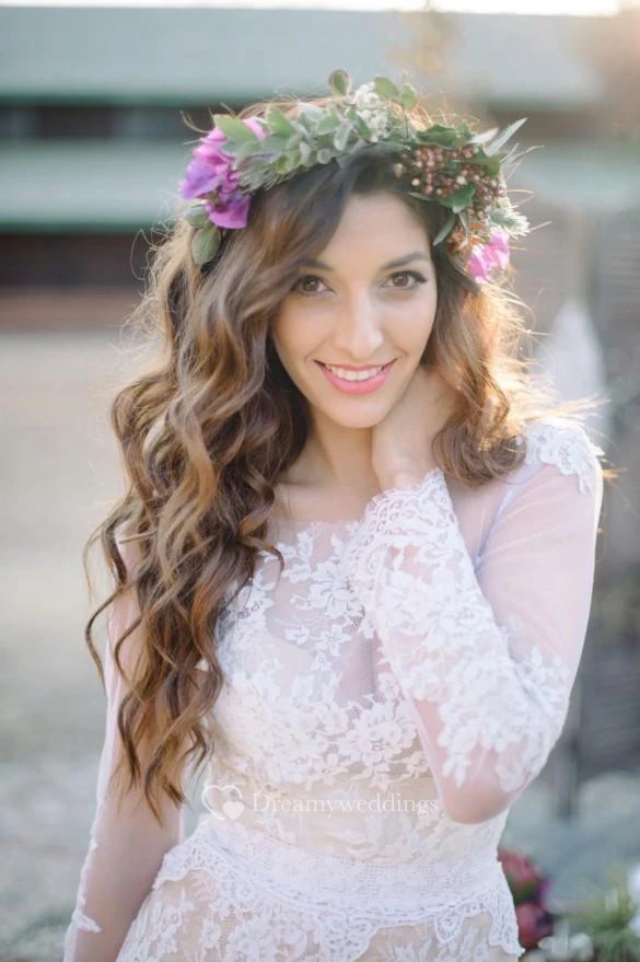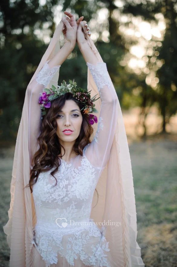 Delicate Chiffon Lace Appliques Wedding Dress Long Sleeve
