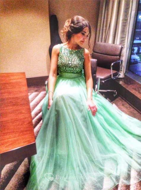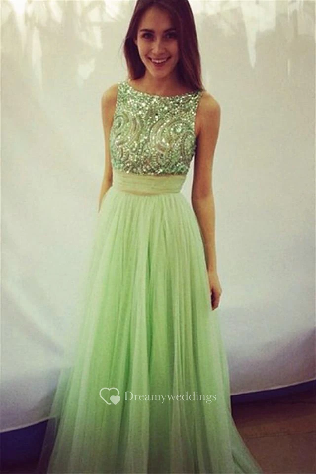 Delicate Crystals Tulle Prom Dress Bowknot A-line