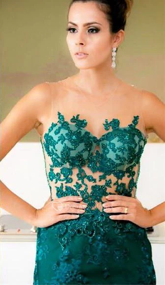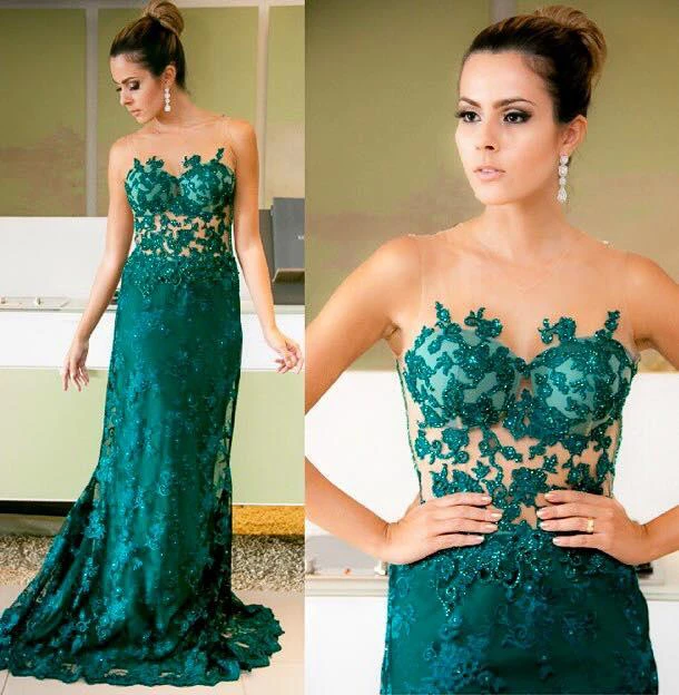 Delicate Lace Appliques Beadings Evening Dress Sweep Train Sleeveless
