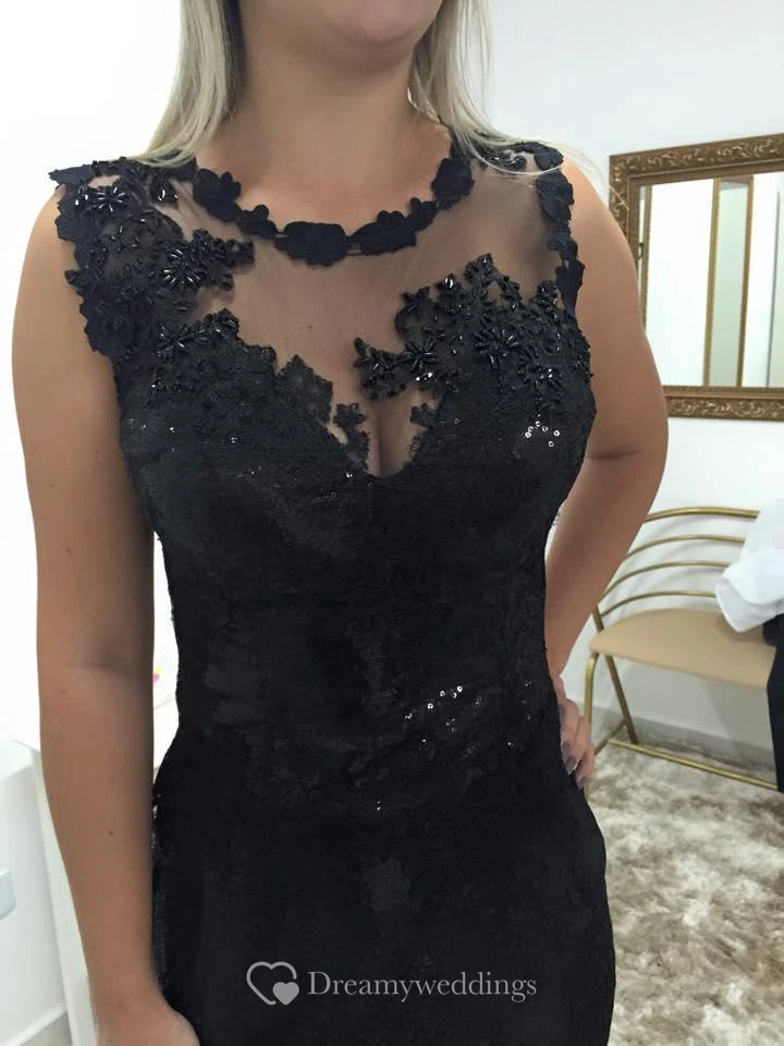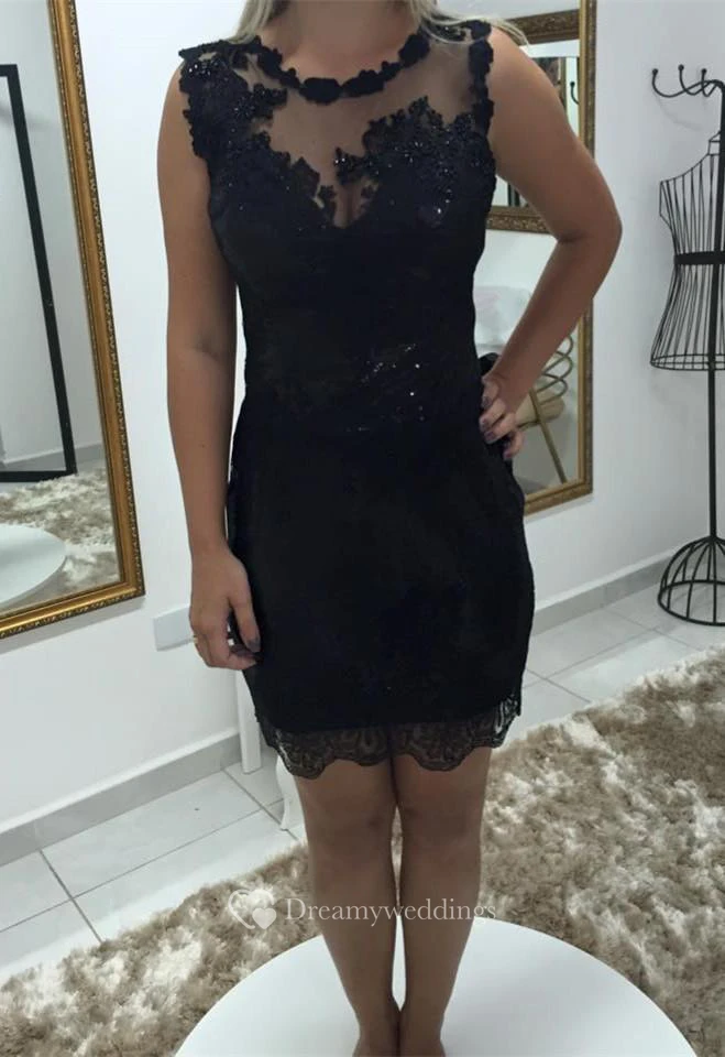 Delicate Lace Appliques Sequins Cocktail Dress Short Bodycon Black