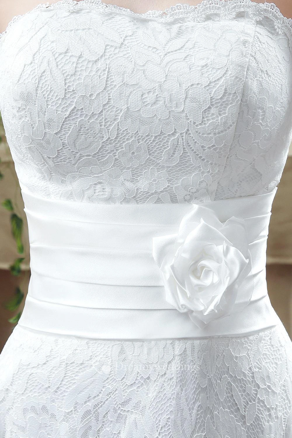 Delicate Lace Flower Strapless Wedding Dress A-line Sleeveless Lace-up