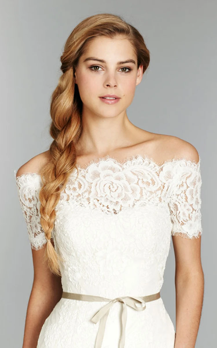 Delicate Lace Organza Gown With Detachable Off the Shoulder Bolero