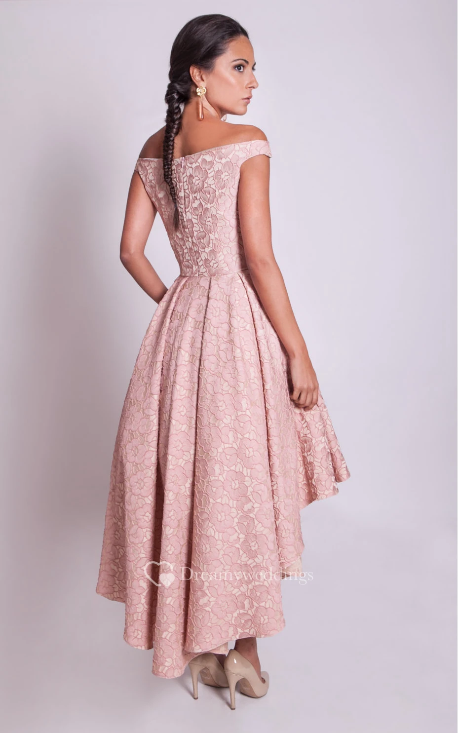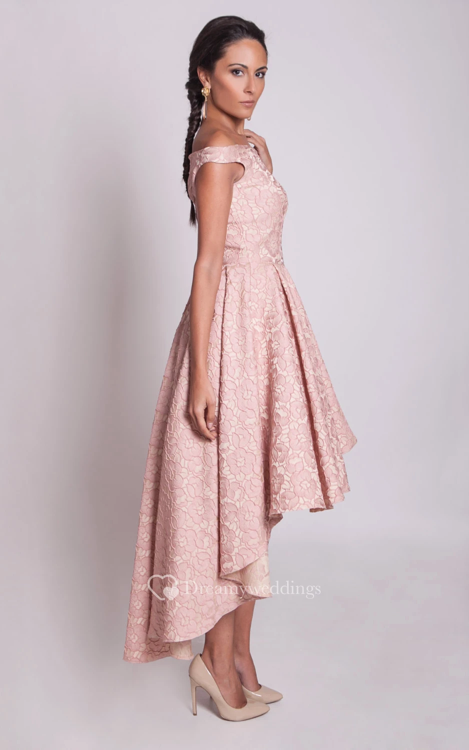 Delicate Off-the-shoulder High Low Lace Dress With Pleats
