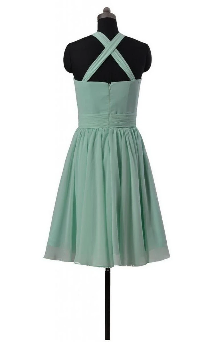 Delicate Pleated Short Dress With Ruched Band