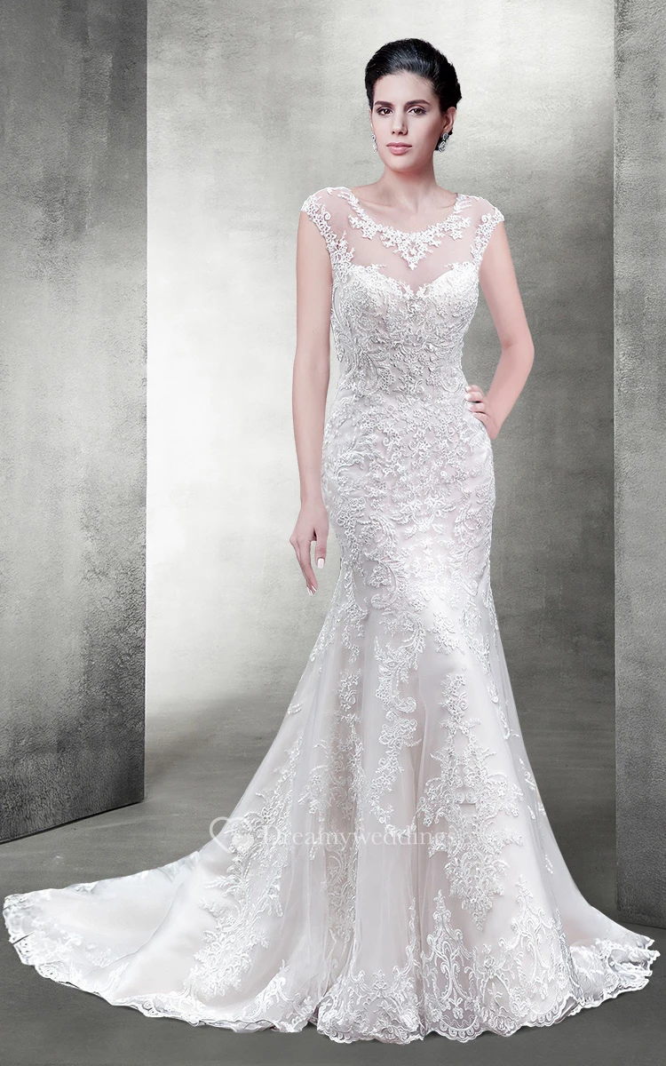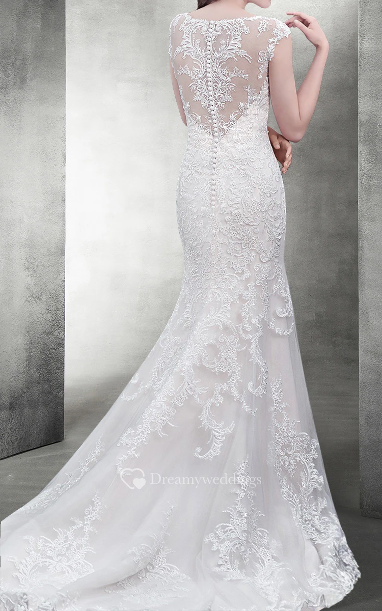 Delicate Scoop Neck Lace Wedding Dress With Illusion Back