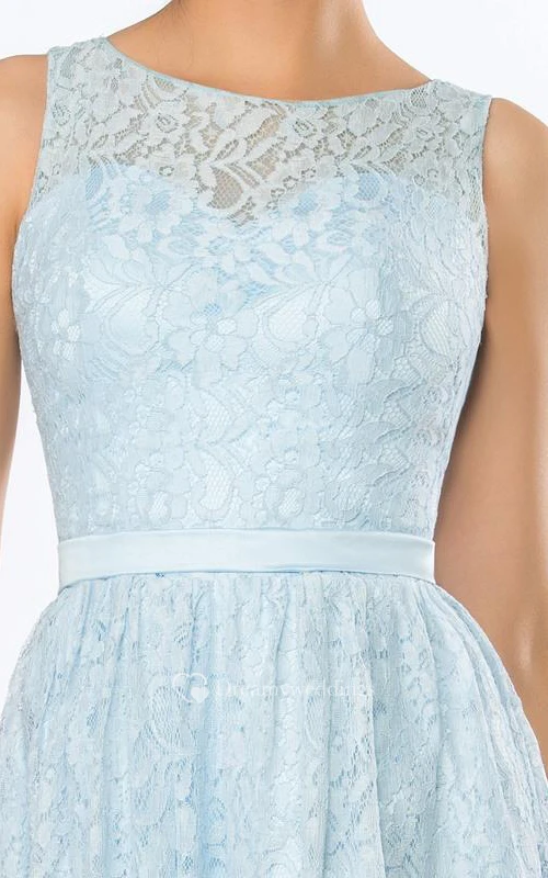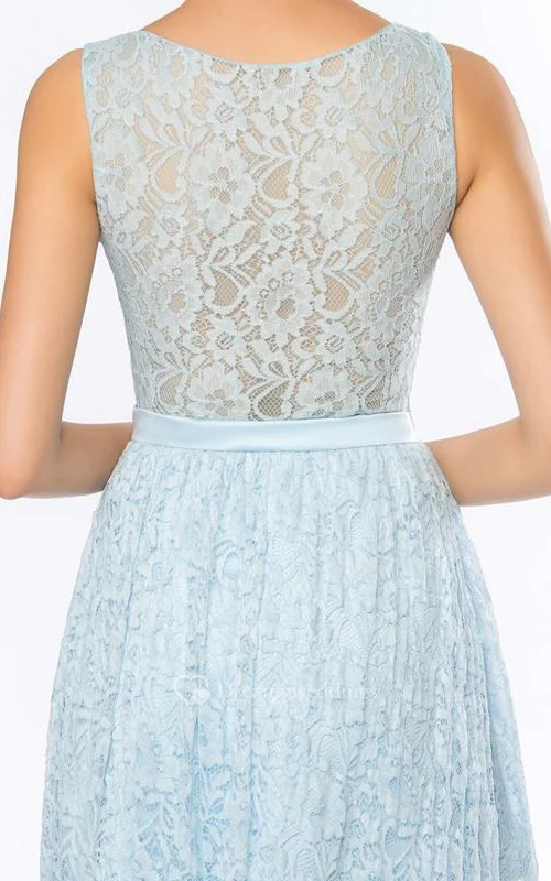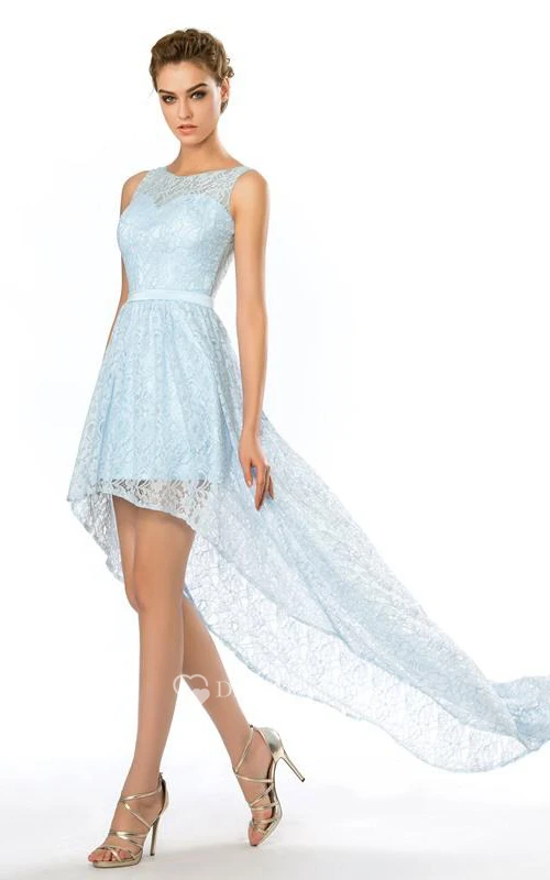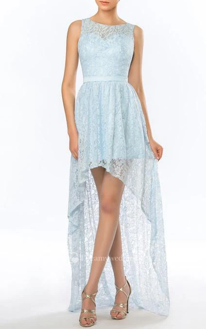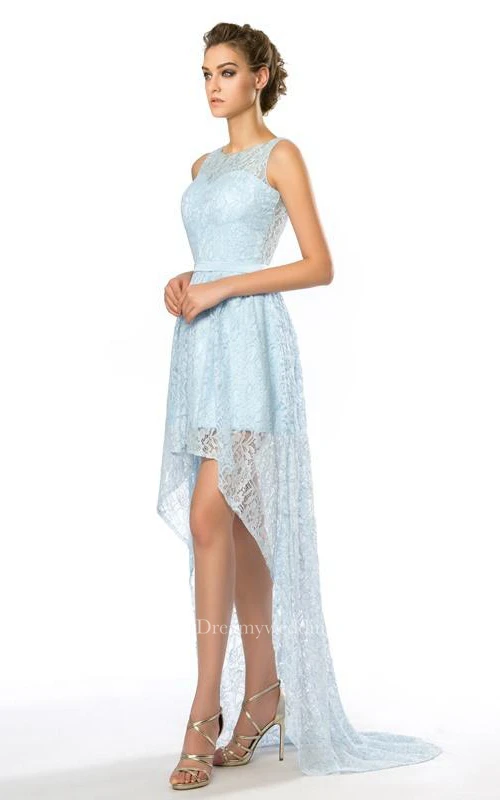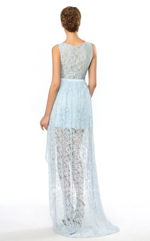 Delicate Sleeveless Asymmetrical Lace Long Evening Dress